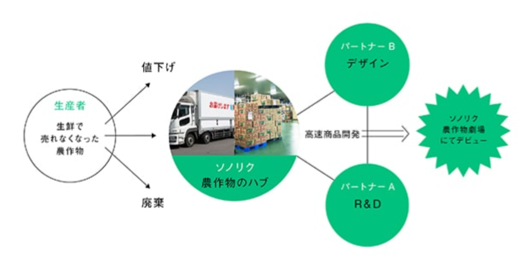 複数のパートナー企業と提携し、保存方法や加工方法、デザインを工夫することで、収穫期を過ぎたり、あるいは規格外となったり、様々な理由で出荷が困難となった農作物から新たな魅力を引き出し、消費者の元に新しい商品として届けていくことで、消費者側の「新鮮で綺麗なものがいい」という常識を変え、「より多様で豊かな農作物の世界」を目指していきます。