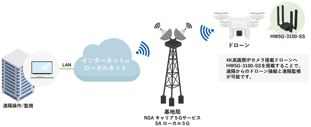 産業用のネットワーク・映像機器を開発販売するハイテクインター株式会社(社長:旦尾 紀人、本社:東京都渋谷区)は、マルチキャリア/5G対応の小型軽量産業用5Gルータ[HW5G-3100-SS]を2023年3月に発売開始予定です。新機能2×2MIMO(ツーバイツーマイモ)により、従来比2倍の高画質高速アップロードを実現、大容量で低遅延の通信が可能です。小型軽量と広い動作温度で、ロボット・ドローン・重機・トラクターなど様々な産業用機器の遠隔監視・制御/自動操縦に幅広く活用できます。