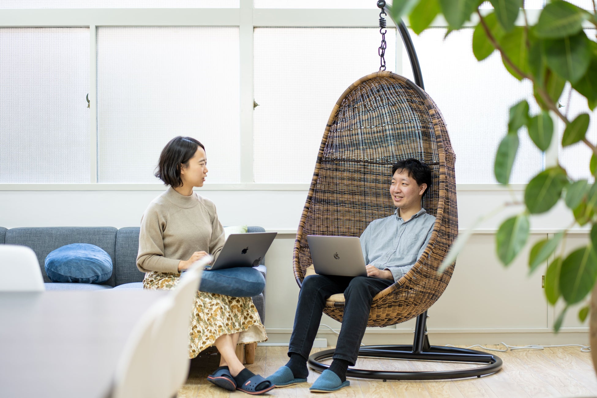 また、ゆりかごチェア、スタンディングデスク、リクライニングチェアなど、メンバーの「気軽にコミュニケーションが取れる」をサポートする空間を設計いたしました。