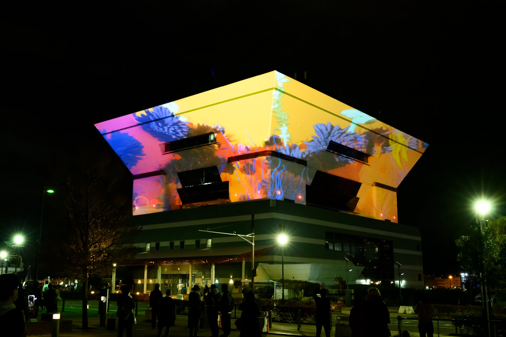 テーマは「GROW-進化する-」。「ひと・もの・文化」が交差(CROSS)し巡る(FLOW)ことで、新しいものへと進化(GROW)していく横浜を光と音で表現します。