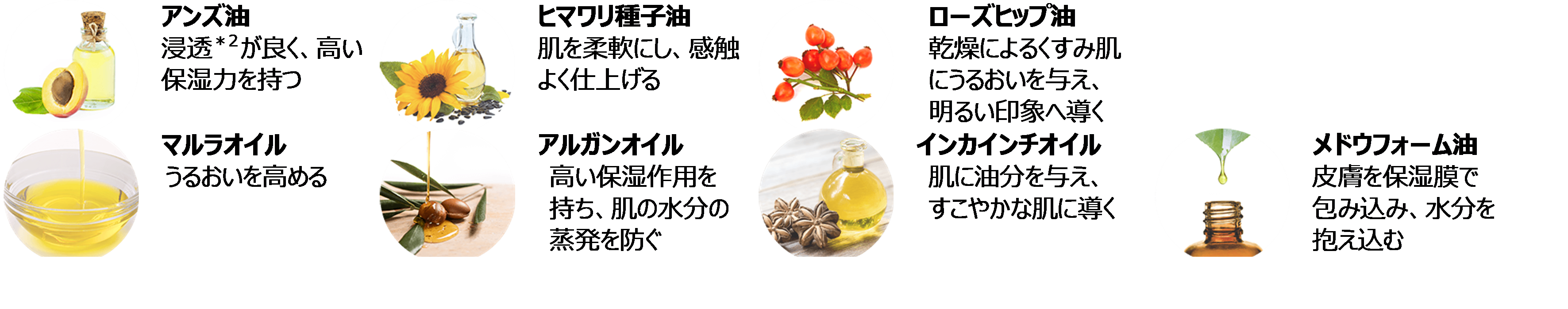 (2)柔らかく心地よい肌を作る7種の厳選オイルを配合