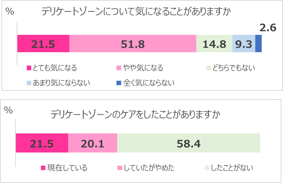 - 女性の7割以上がデリケートゾーンを気にしているのに、ケアしているのは2割⁉
