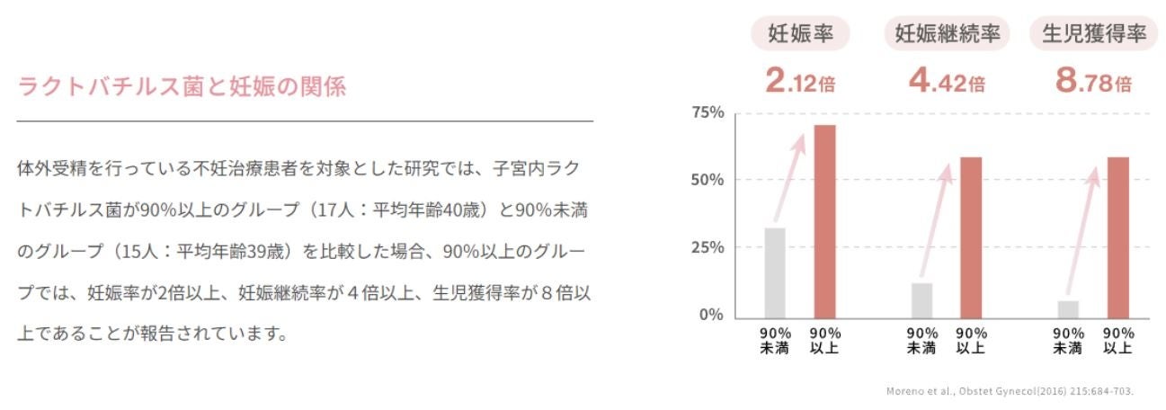 善⽟菌である「ラクトバチルス菌」は、健康な膣内フローラに多く存在し膣内を弱酸性に保つことで、雑菌の侵⼊を防ぐ役割を持っています。さまざまな要因でラクトバチルス菌が減少すると、悪⽟菌が増殖し、不妊リスクや感染症などの婦⼈科系疾患、膣トラブルの発⽣につながる可能性があると考えられています。