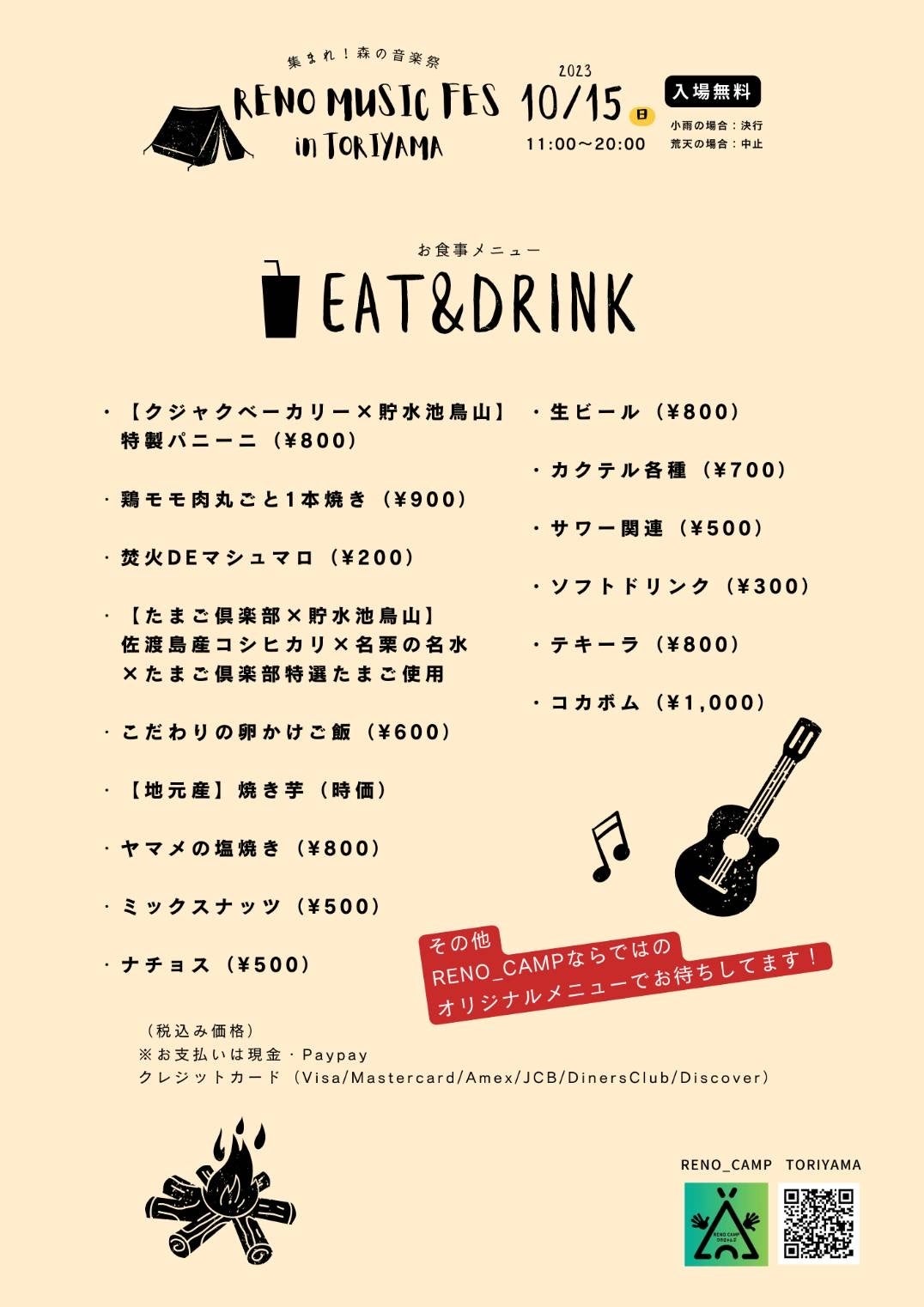 その他RENO CAMP TORIYAMAならではのオリジナルメニューをご用意しております。