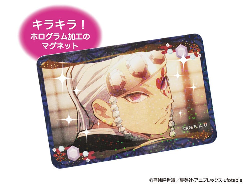 さらに、宇髄天元それぞれ全3種類のオリジナル「キラキラマグネットステッカー」が、1箱にランダムで1枚入になります。