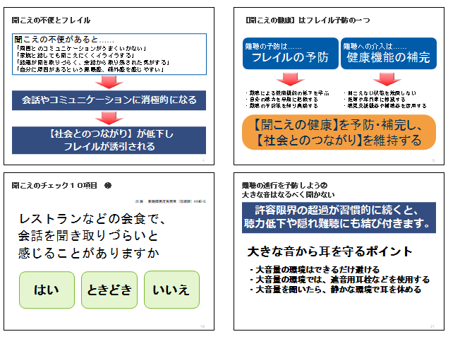 このたび、聞こえづらさの問題が引き起こすコミュニケーションの問題やフレイル(心身機能の虚弱)についての啓発を通して、港区の高齢者が健康リスクの低減に取り組むきっかけを提供するべく、健康講座を開催することといたしました。