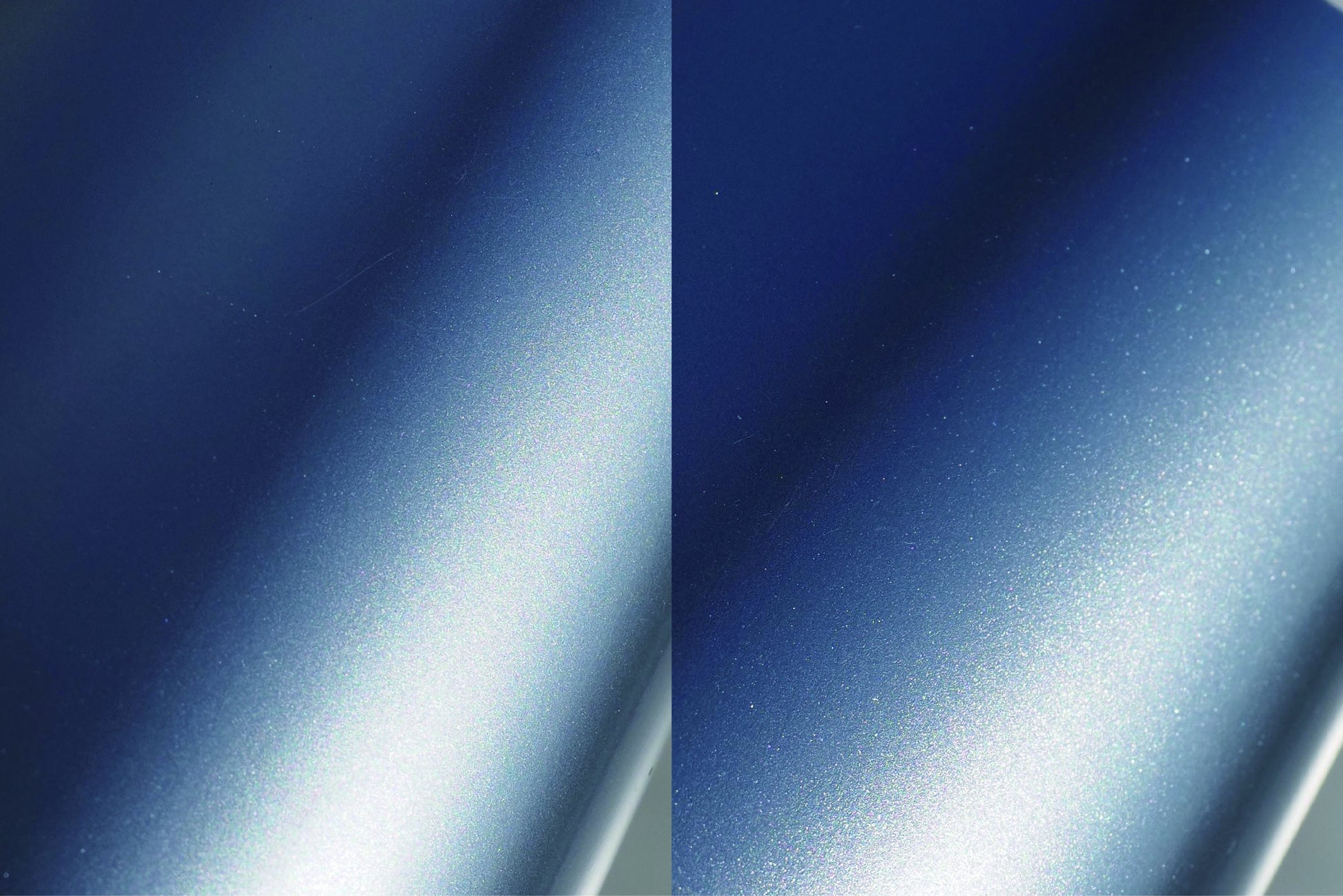 展示製品:金属調シルバーメタリック顔料、熱を吸収し難い黒メタリック顔料、