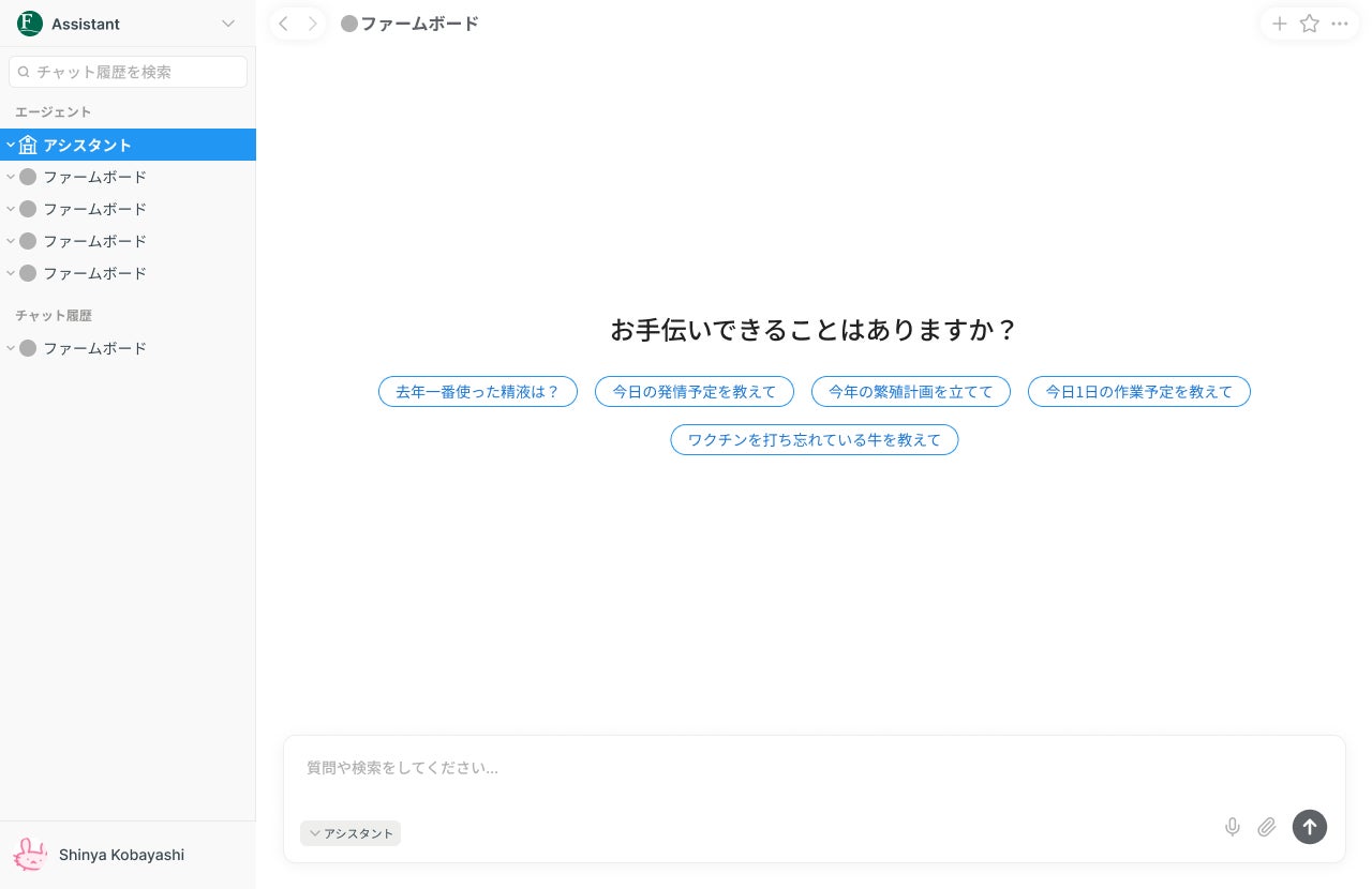 チャット形式のユーザーインターフェース。牧場データを使った対話を実現。 |