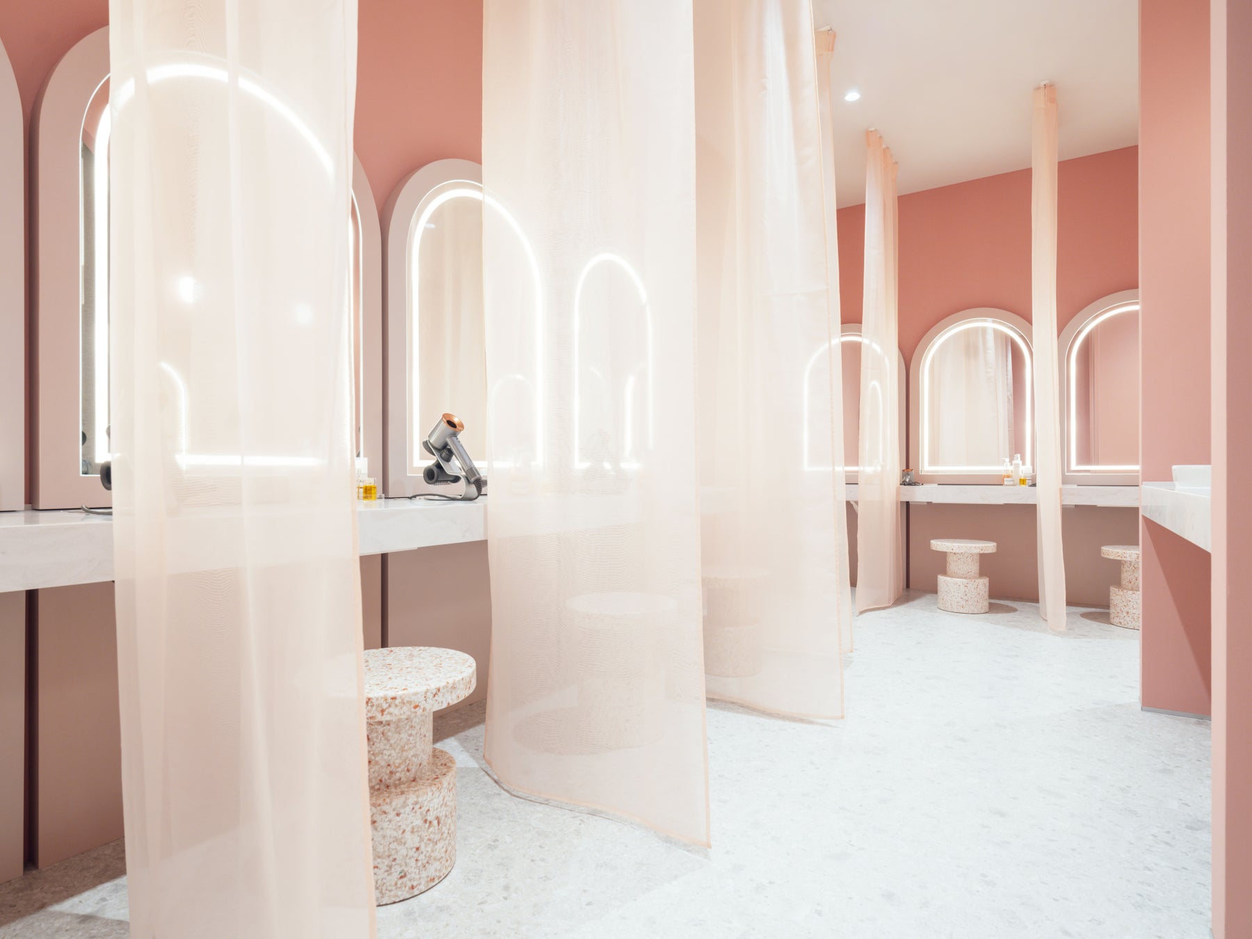デリケートゾーンケアを行う場所はスチームサウナRETOX。アーチ状の垂れ壁で仕切られたセミプライベートな空間では、人目を気にせずゆったりとケアを行なっていただけます。