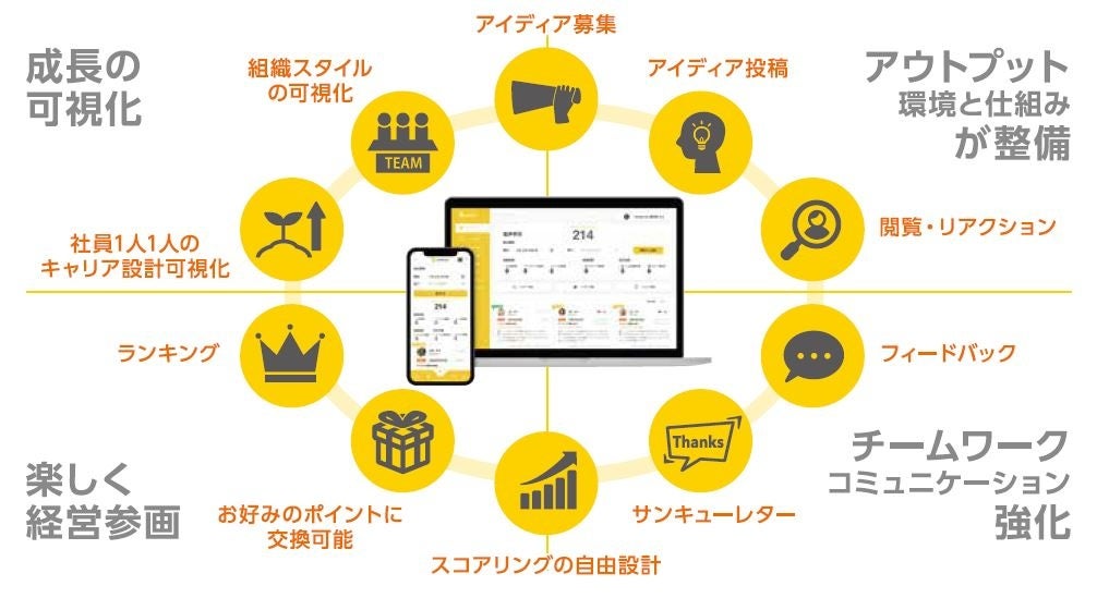 活気溢れる職場と変化を生み出す組織文化を醸成するアイディア・コミュニケーション・クラウドです。