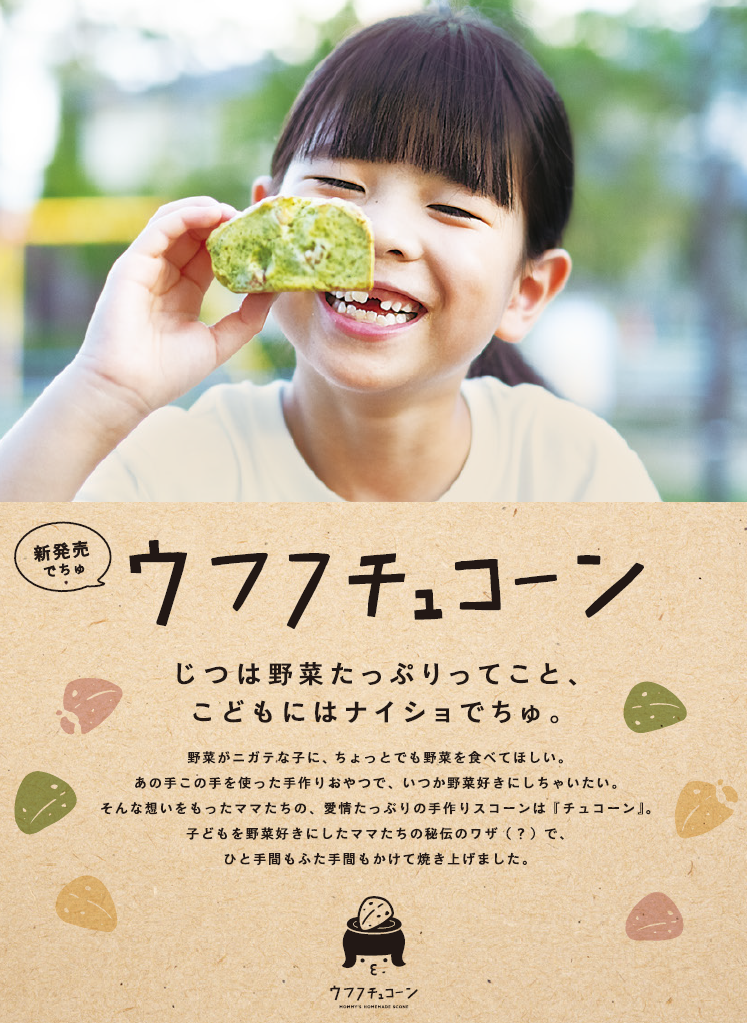 野菜を喜んで食べてほしいママの愛情(=チュー)が詰まったスコーン「ウフフチュコーン」