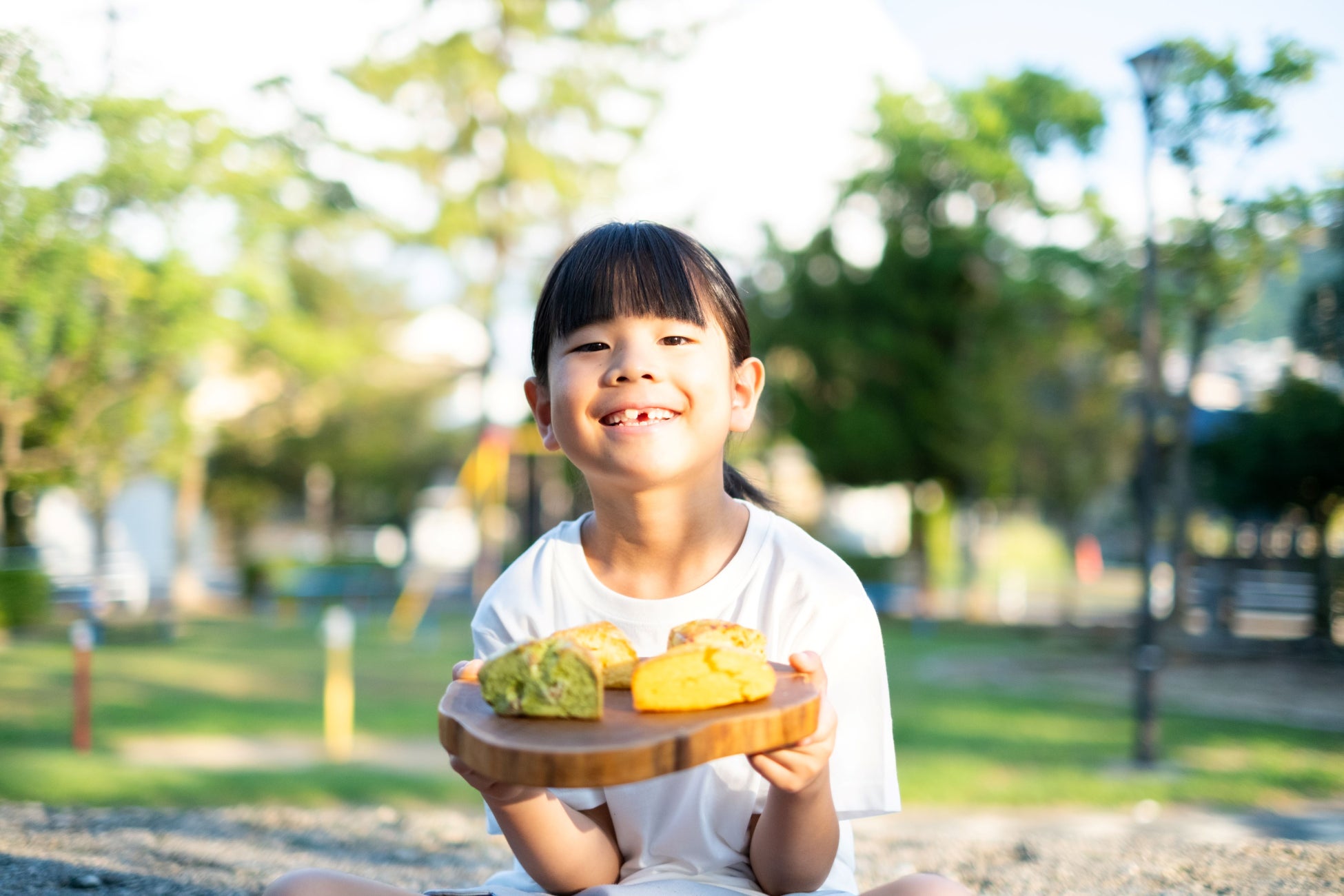 スコーンに入れる野菜を決める際には、小さな子どもを持つスタッフたちや保育園の栄養士さんなどにヒアリングしたり、子どもの好き嫌いに関する様々なリサーチ結果を確認。その中で、嫌いな野菜として多く挙がったのは「にんじん・葉物野菜・ピーマン」等の苦みや独特の香りがある野菜。同じく好きな野菜として良く挙がったのは「かぼちゃ・さつまいも・玉ねぎ」等の甘みがありくせの少ない野菜。それらの中から、子どもが嫌いな野菜と、逆にご褒美になる好きな野菜の両方をチョイスしてラインナップを決定。子どもが食べやすいよう、しっとり食感にもこだわってレシピを決めました。