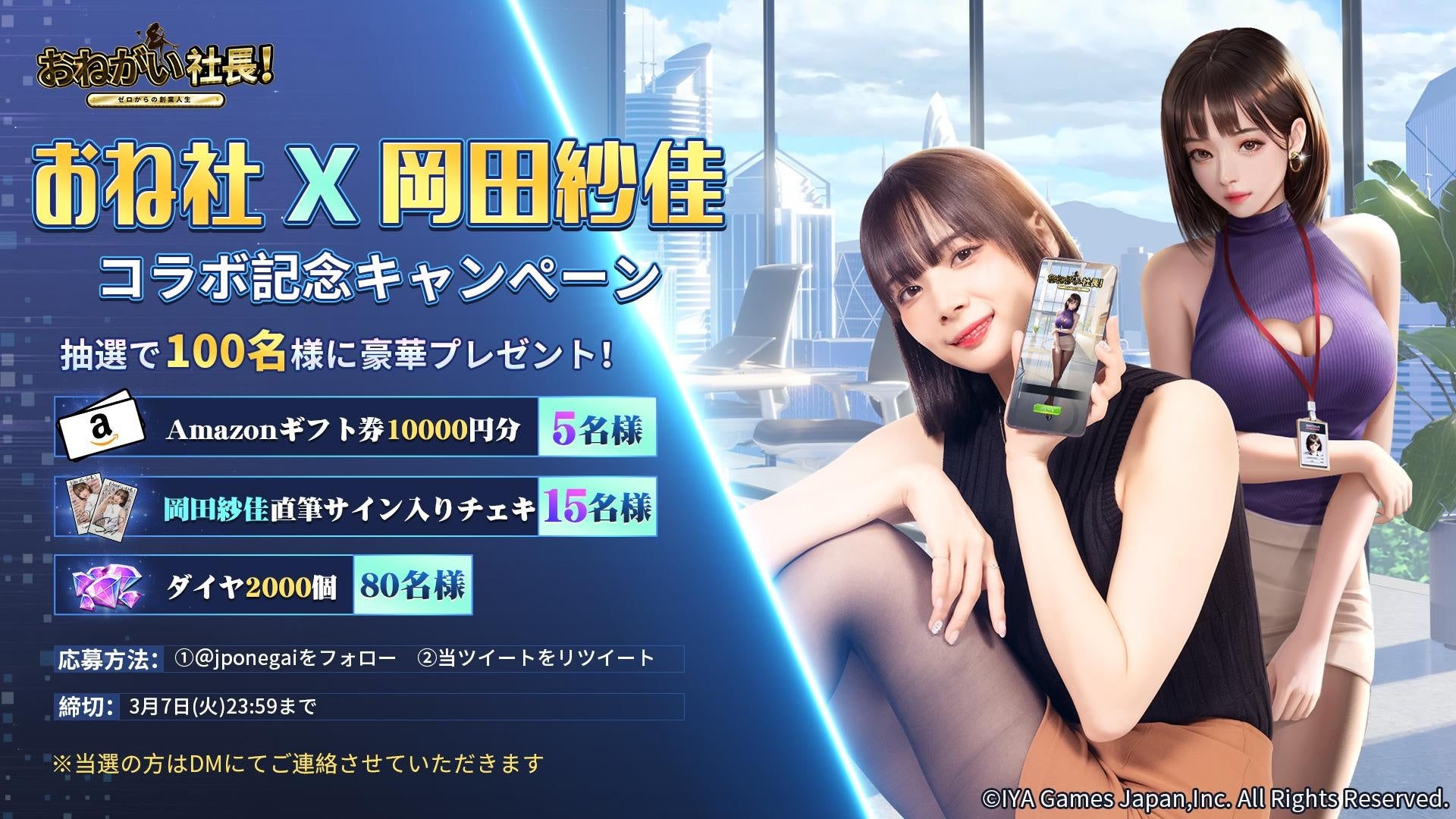 - 「おねがい社長」×「岡田紗佳」とのコラボ開始!