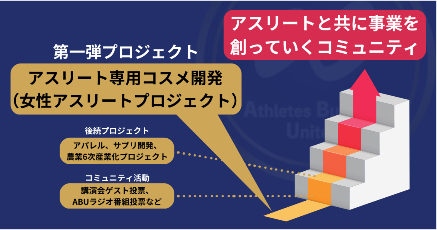ABUトークンコミュニティではABUで学ぶアスリート達と共に事業を興したり、定期的なイベント開催をコミュニティメンバーと共に創っていく予定です。今回のトークン発行は、その第一弾としてアスリート専用コスメ開発プロジェクト実施を目的とし実施いたします。