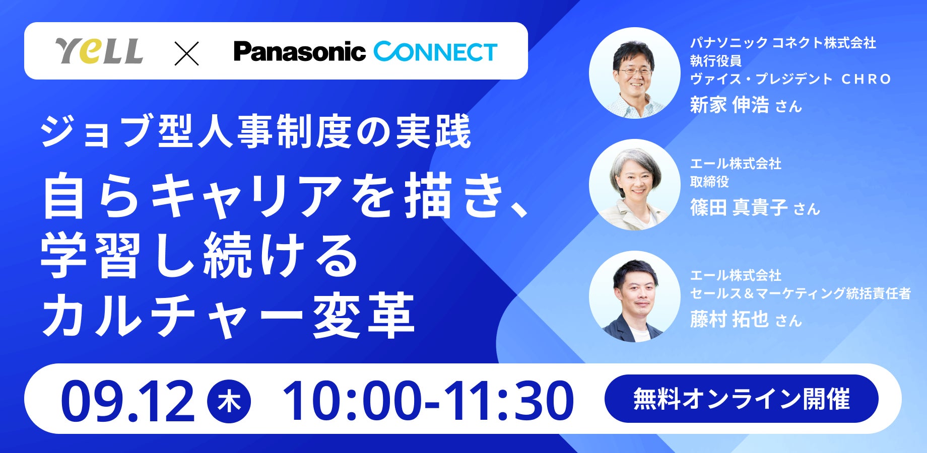 2024年9月12日、エールはパナソニック コネクト株式会社執行役員 ヴァイス・プレジデントCHROの新家伸浩さんをゲストにお招きしてセミナーを開催、同社のジョブ型人事制度の取り組みと実践の経緯、組織の変化についてお話しいただきます(開催終了)。