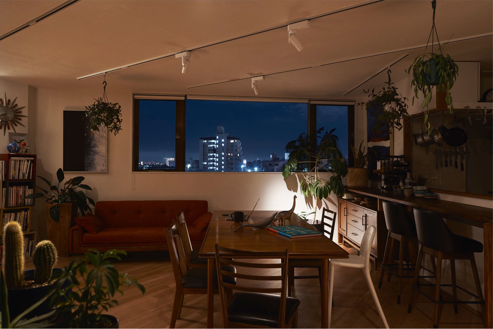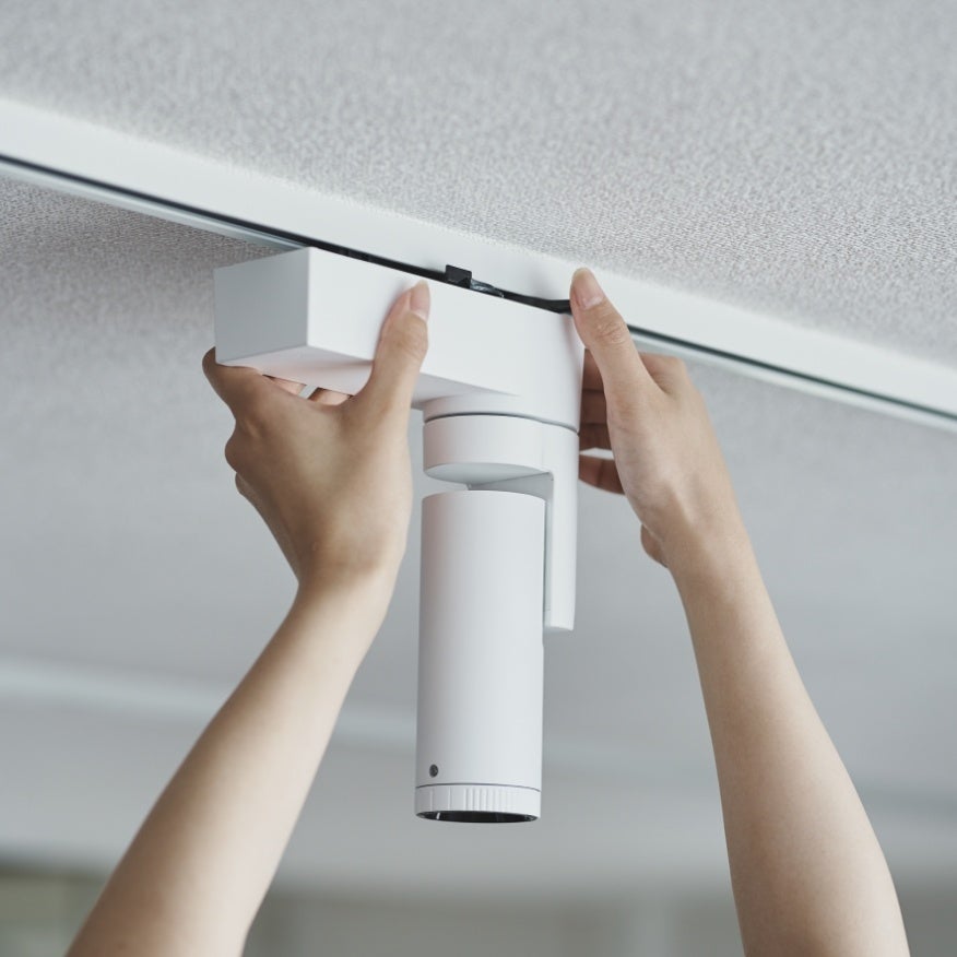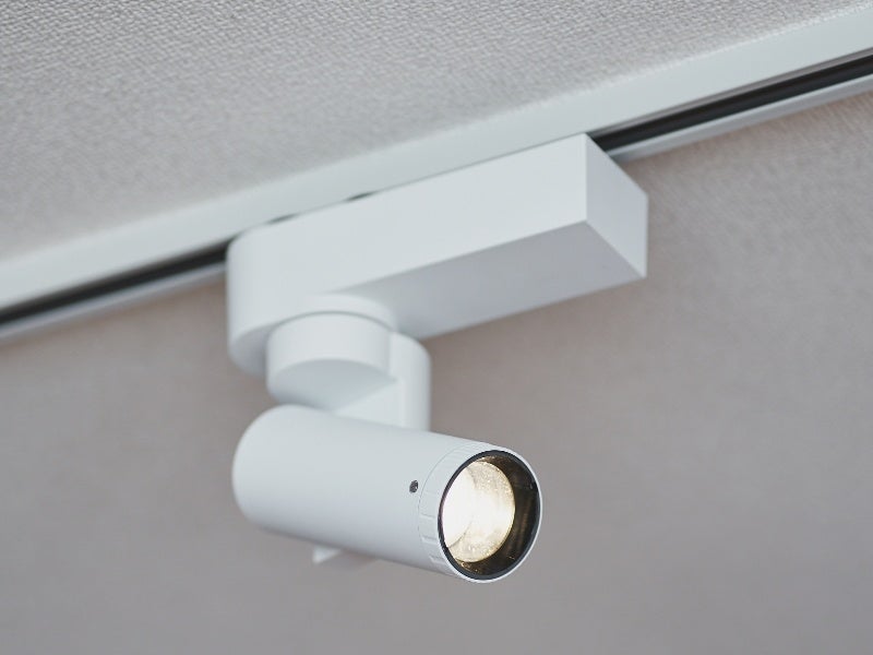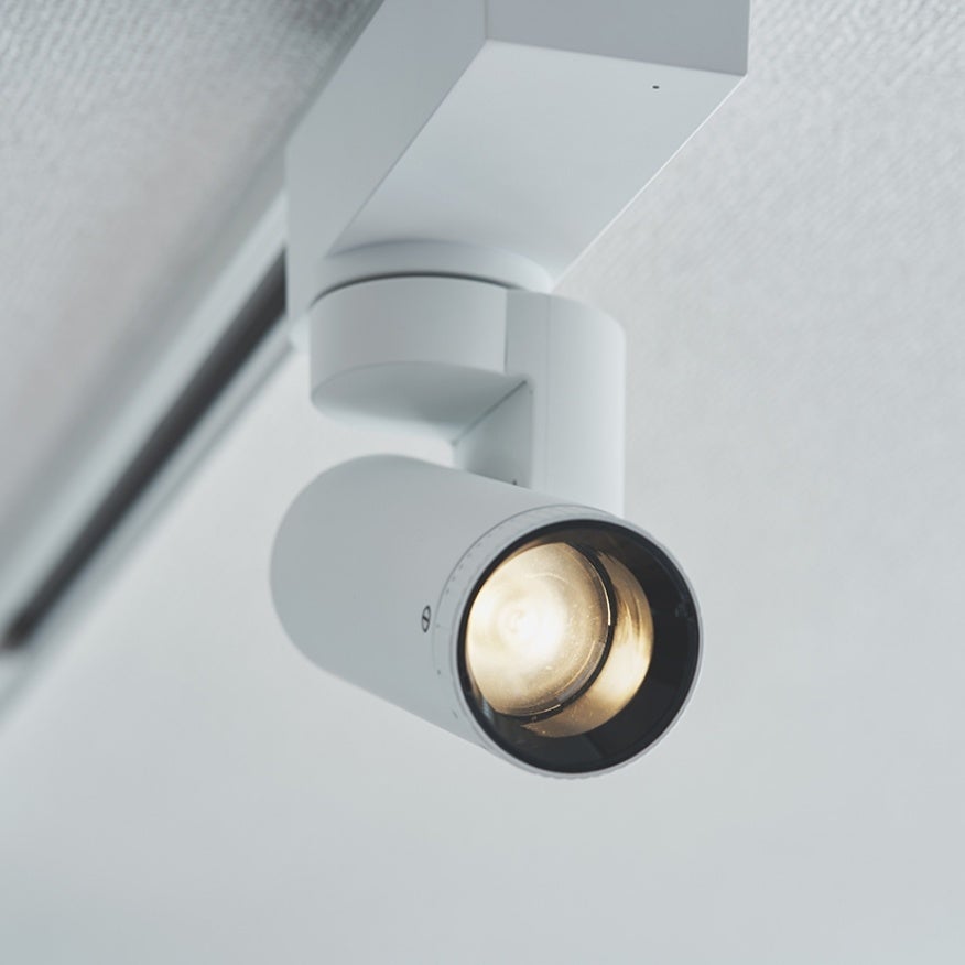 「SALIOT ムービングスポットライト」の新モデルは、住宅や小規模店舗、事務所など天井高が2.4~2.8mの空間での使用を想定しています。コンパクトサイズ、シンプルなデザイン、動作時の静音設計に加えて、美術館や博物館などで求められる高い演色性(Ra97)*を実現しています。インテリアや食事がきれいに見え、視作業にもおすすめできるあかりです。