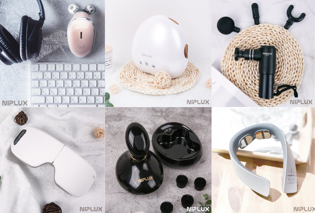 首や肩、腰、脚をケアするEMS機器や運動前後のセルフケアに最適な筋膜ガン、光美容器など、生活に寄り添う商品の製造・販売を行っています。家事やお仕事、スポーツ時など、場所を選ばず誰でも簡単にリラックスできるコンパクトでスタイリッシュなデザインも特徴です。