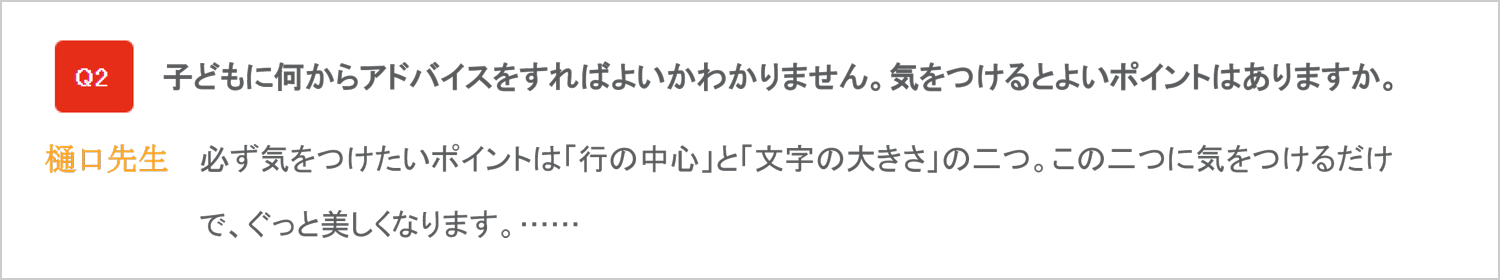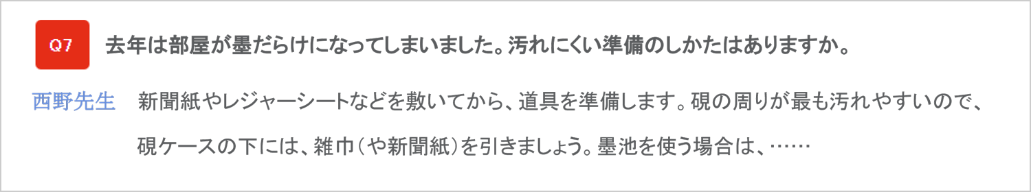 冬休みの宿題として取り組むことの多い「書き初め」。保護者の「子どもに何からアドバイスをすればよいかわからない」、「部屋が墨だらけになってしまう」といったお悩みに、光村図書「書写」教科書編集委員がお答えします。回答してくださった編集委員は、「全日本書初め大展覧会」の審査顧問も務める樋口咲子先生と、小学校での書写指導に携わっていらっしゃる西野暁子先生のお二人です。Q&A形式で、全国の保護者のお悩みを解決します。