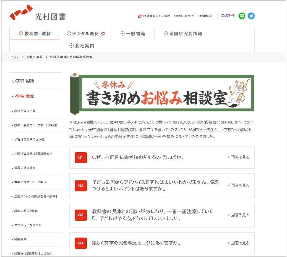 小・中・高等学校向けの教科書を発行する光村図書出版株式会社(所在地:東京都品川区、代表取締役社長 :吉田直樹/以下、光村図書)は、冬休みの特別コンテンツとして、「冬休み 書き初めお悩み相談室」を12月20日よりウェブサイトにて公開しました。