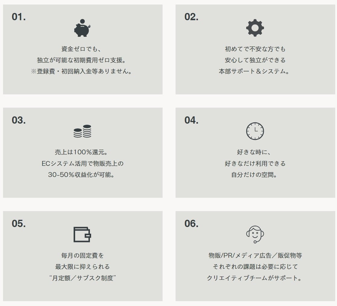 ④美容代理店(サロンビレッジ提携)紹介制度。個人間での商材仕入れ、卸値お取引が可能に。
