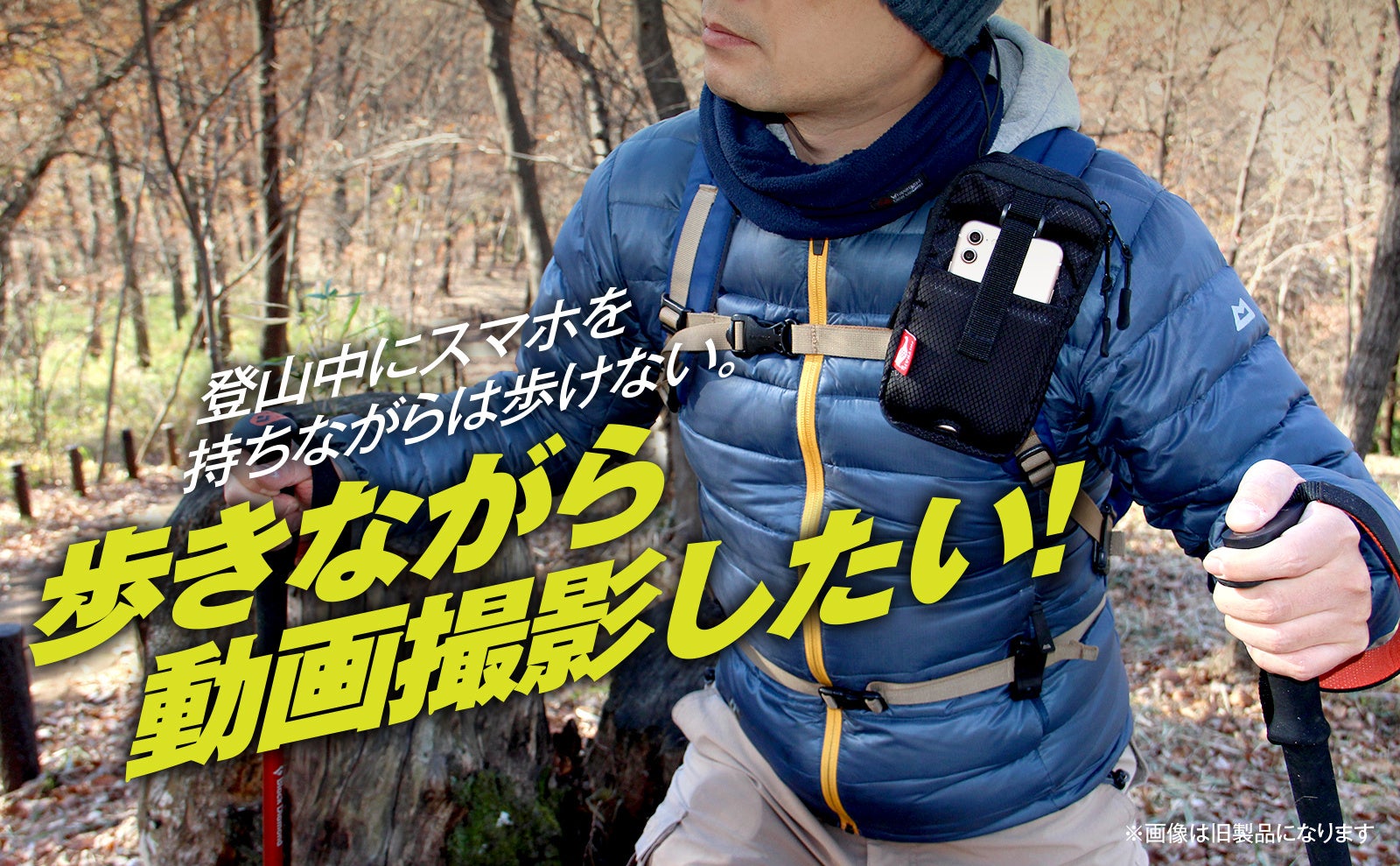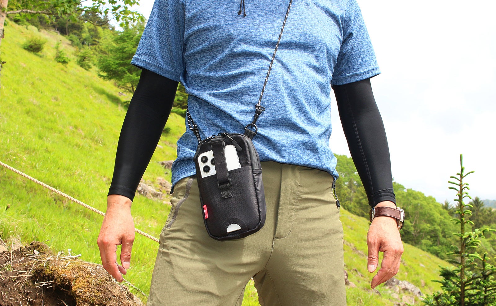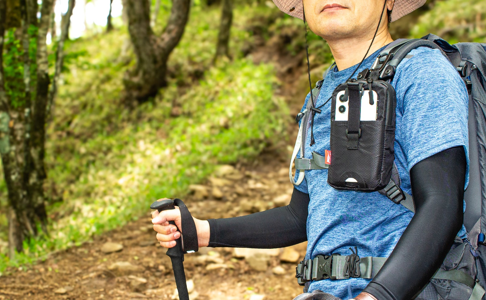 山の情報は胸元に携帯 リュックやベルトにスマホを取付自由で両手フリー!登山自転車通勤用ミニマムポーチバッグ「フリースタイルアウトドアポーチ ver2.0」Makuakeにて限定予約受付中!