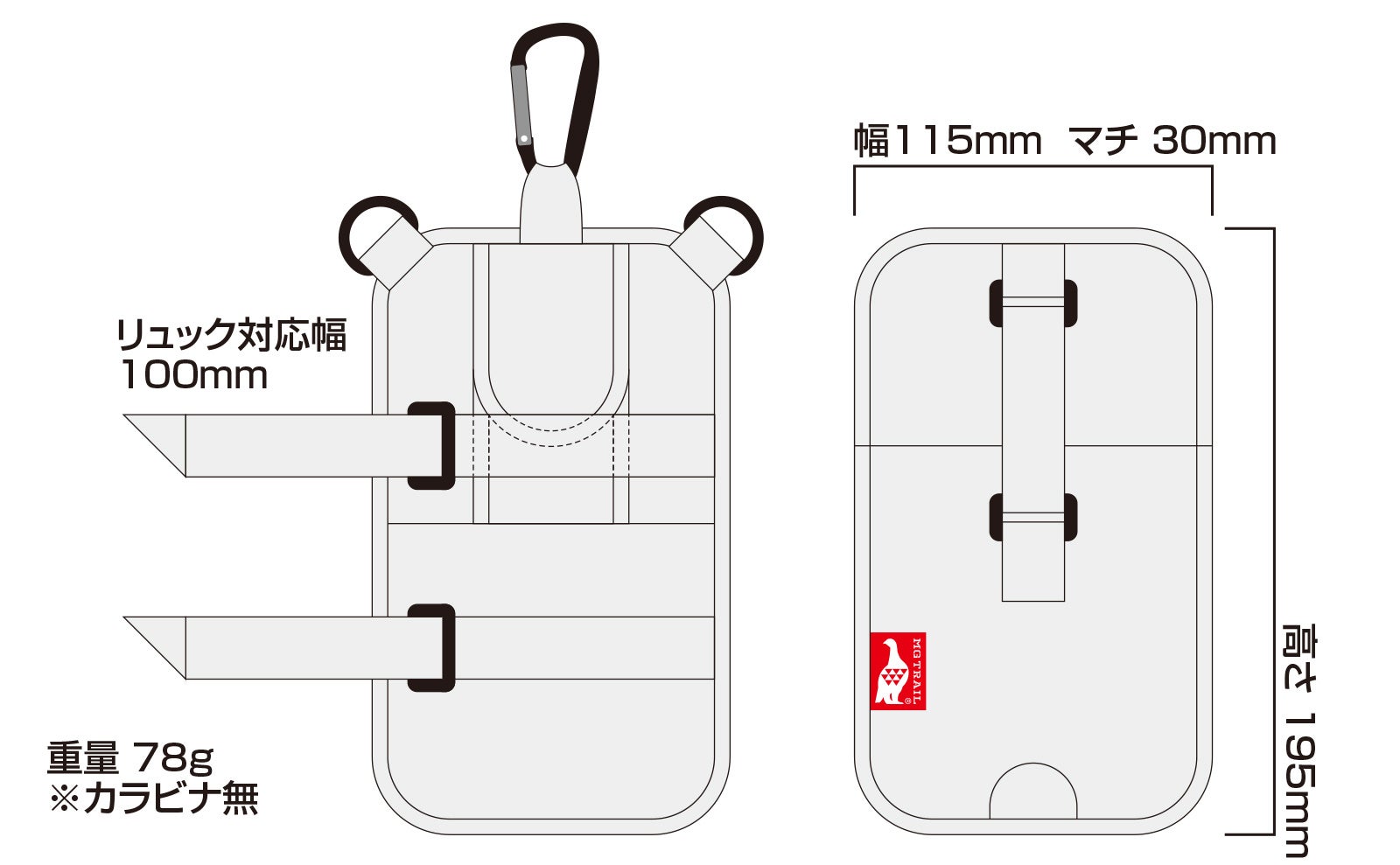 [サイズ] 展開時:全長195mm×幅115mm マチ30mm ※カラビナ含まず