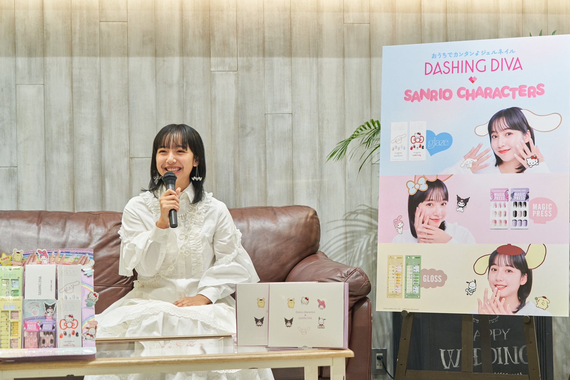 11月8日(火)発売の「DASHING DIVA × サンリオキャラクターズ」シリーズ新商品発表会で、「山之内すず」さん、貼るだけジェルネイル体験!