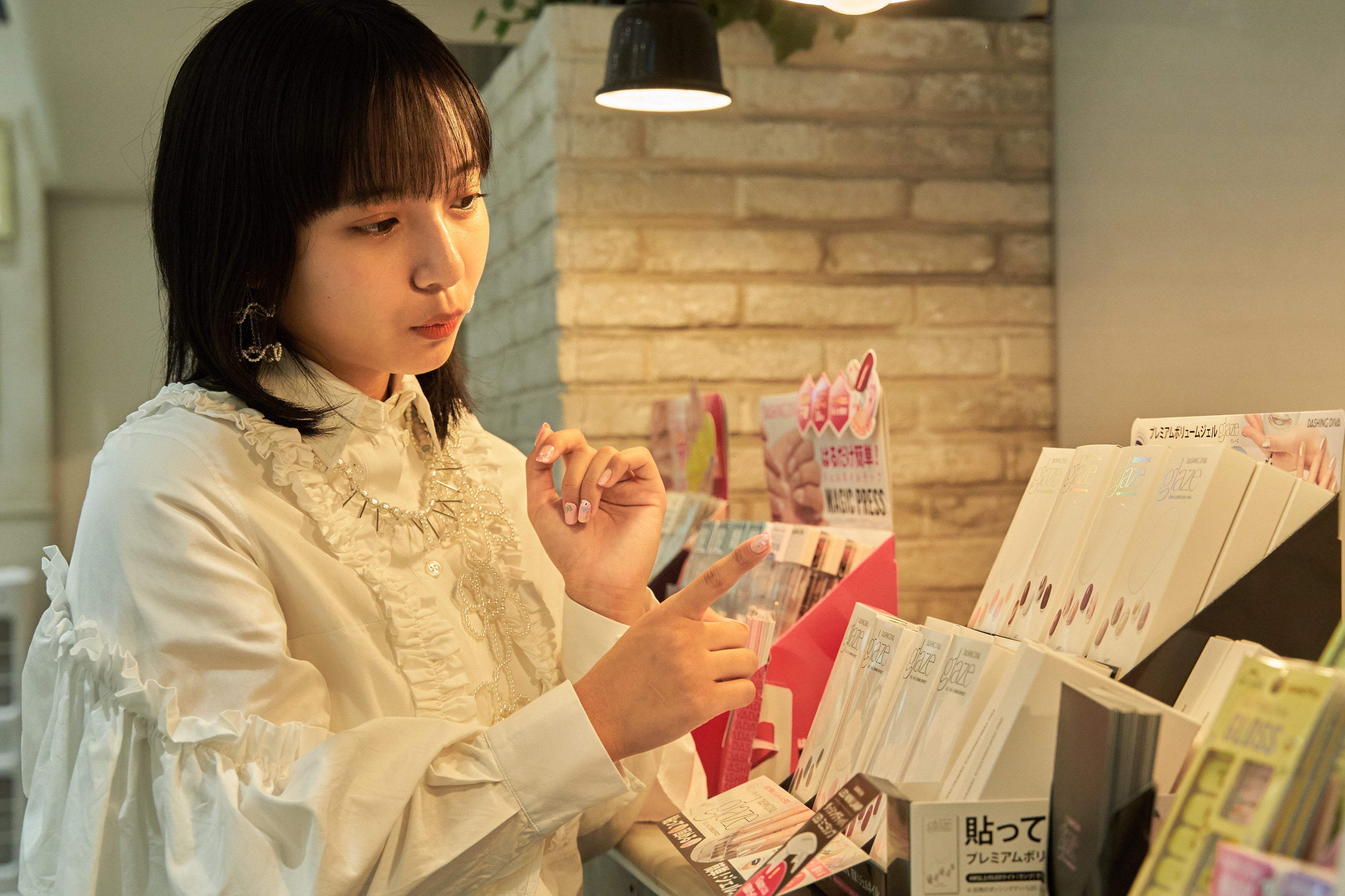 「最近初めてジェルネイルをした時は難しすぎて2時間くらいかけてやりました。MAGIC PRESSは誰でもできると思います。すぐに付けられますし、貼るのに1本の指に1分もかかっていないです!時間がない時でも、貼ってそのまますぐ生活できるのが嬉しいです。学校やお仕事で普段ネイルができない方にも、簡単に付け替えができるのでおすすめだなと思います!」とお話しいただきました。