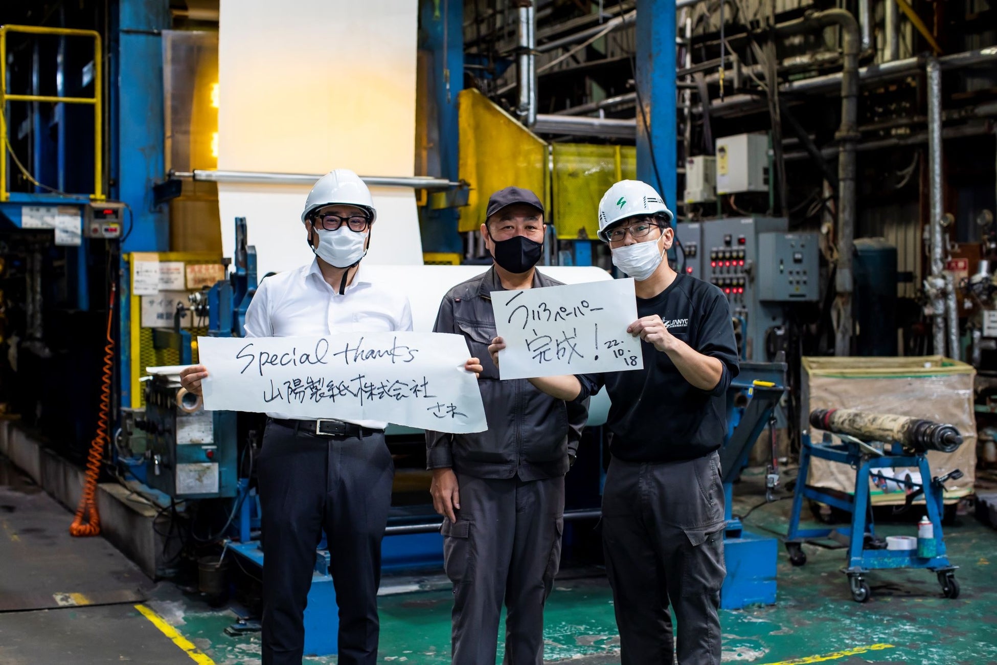 その取り組みの一環として、製紙会社にご協力いただき、紙を作りはじめました。