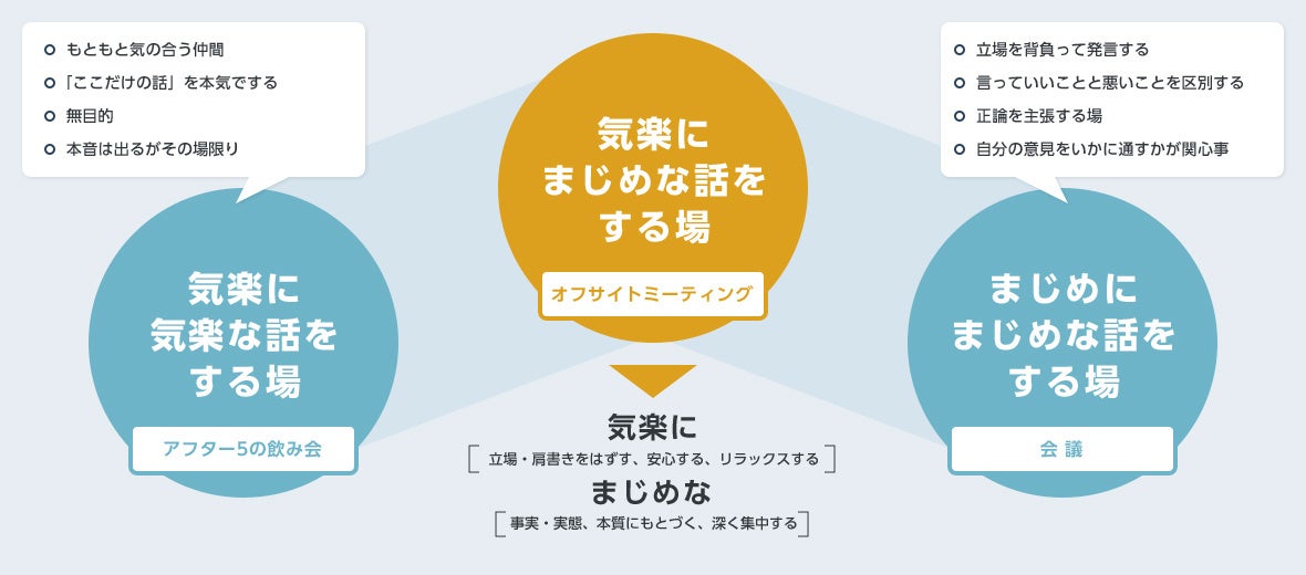 - オフサイトミーティングのコンセプト「気楽にまじめな話をする」