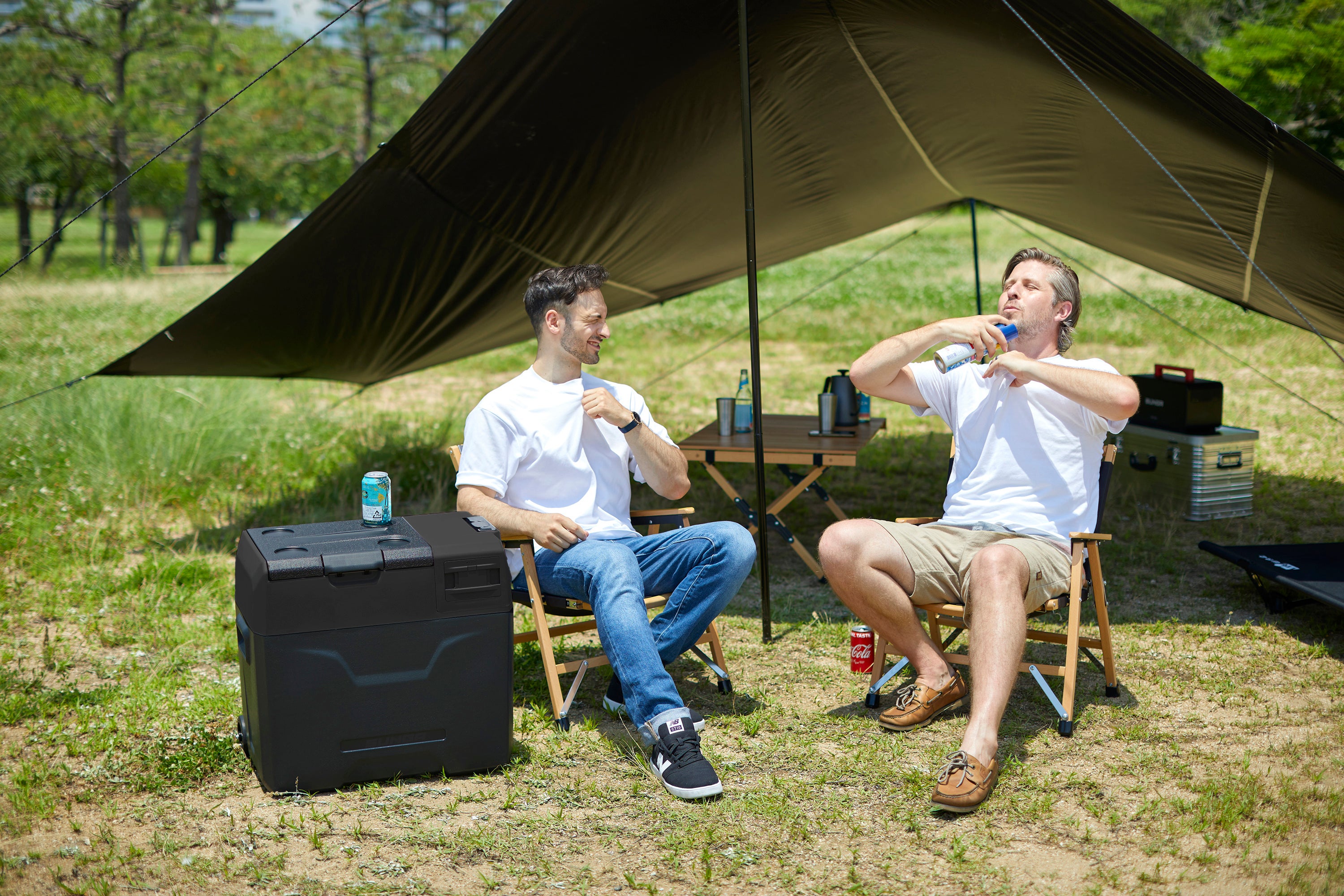キャンプやBBQ、車中泊などのアクティブな使用時でも、どこでも食品や飲料をしっかりと冷やすことができます。