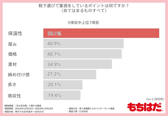 最後に、『靴下選びで重視をしているポイントは何ですか?(あてはまるものすべて)』と靴下について聞いてみました。