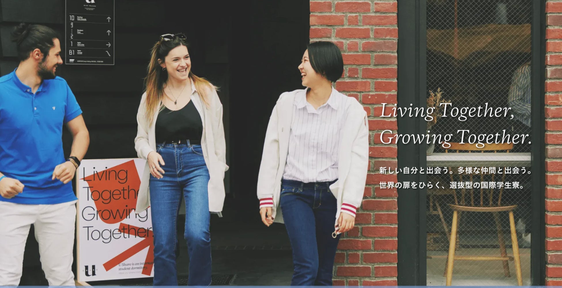 U Shareは、増加する留学生の最適な受け皿となり、また日本にいながら留学さながらの体験ができる場所として、多様な人たちの可能性を解き放つべく生まれた、「住まい」と「学び」が一体化した選抜型の国際学生寮です。大学・国籍・価値観が異なる仲間達と生活をともにすることで、世界的視座を持ち、多様性を尊重し、社会問題の解決に挑む真のグローバル人材育成に取り組むことで、多様な人々が生き生きする社会づくりに貢献して参ります。