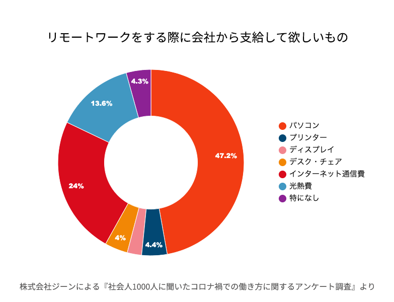 また、リモートワークの普及に伴い自宅の電気代や備品購入代、コアワーキングスペース代などの在宅勤務手当を希望する声も多数ありました。