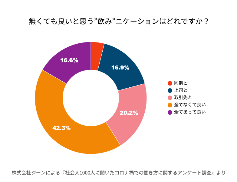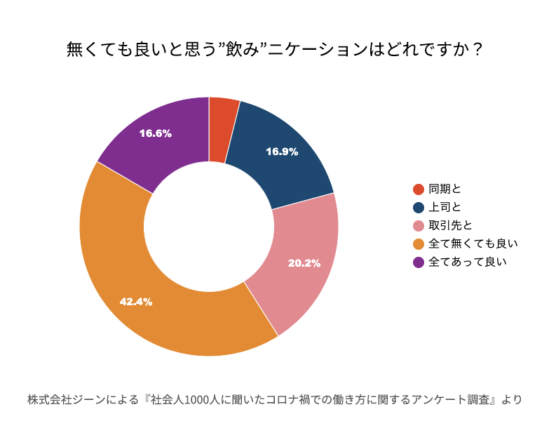 また、同期との飲みニケーションを許容する人が多い一方で、取引先や上司との”飲み”ニケーションはいらないと考える人も多数存在していました。