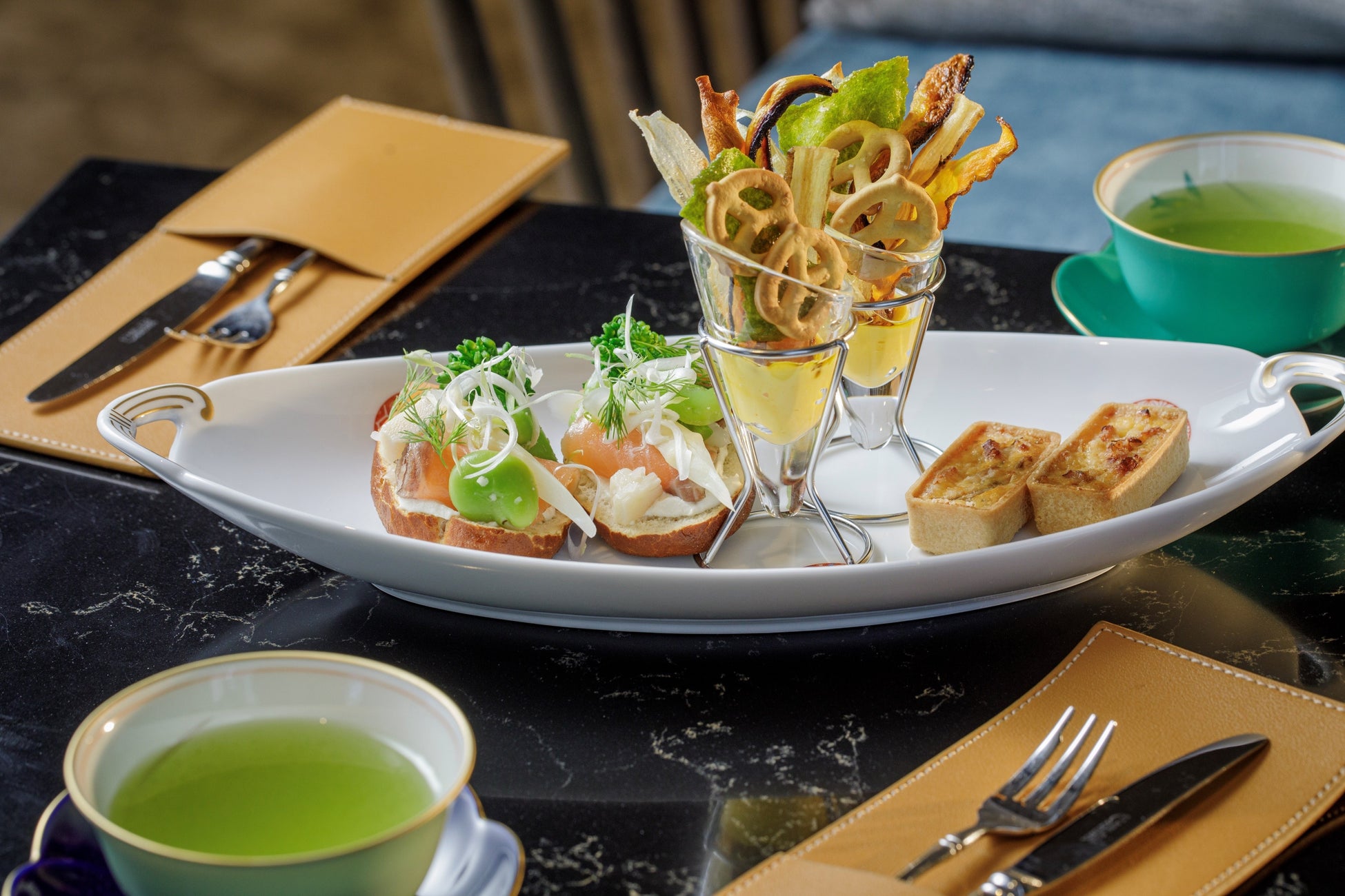 フィナーレに合わせるのは、「ウェルネス・アフタヌーンティー」にて使用している『香蘭社』発祥の地、佐賀県有田町に敬意を表し、佐賀県南西部の嬉野市から長崎県東彼木杵町にかけて生産されているジャパニーズティー「嬉野茶」。室町時代頃から生産が始まったとされる「嬉野茶」は、茶葉が丸く緑の艶が特徴的で、その形状から玉緑茶(グリ茶)とも呼ばれ、香りと旨味の強さが魅力です。「スプリング・ハーモニー」は、そんな「嬉野茶」とともに色鮮やかに終演を迎えます。