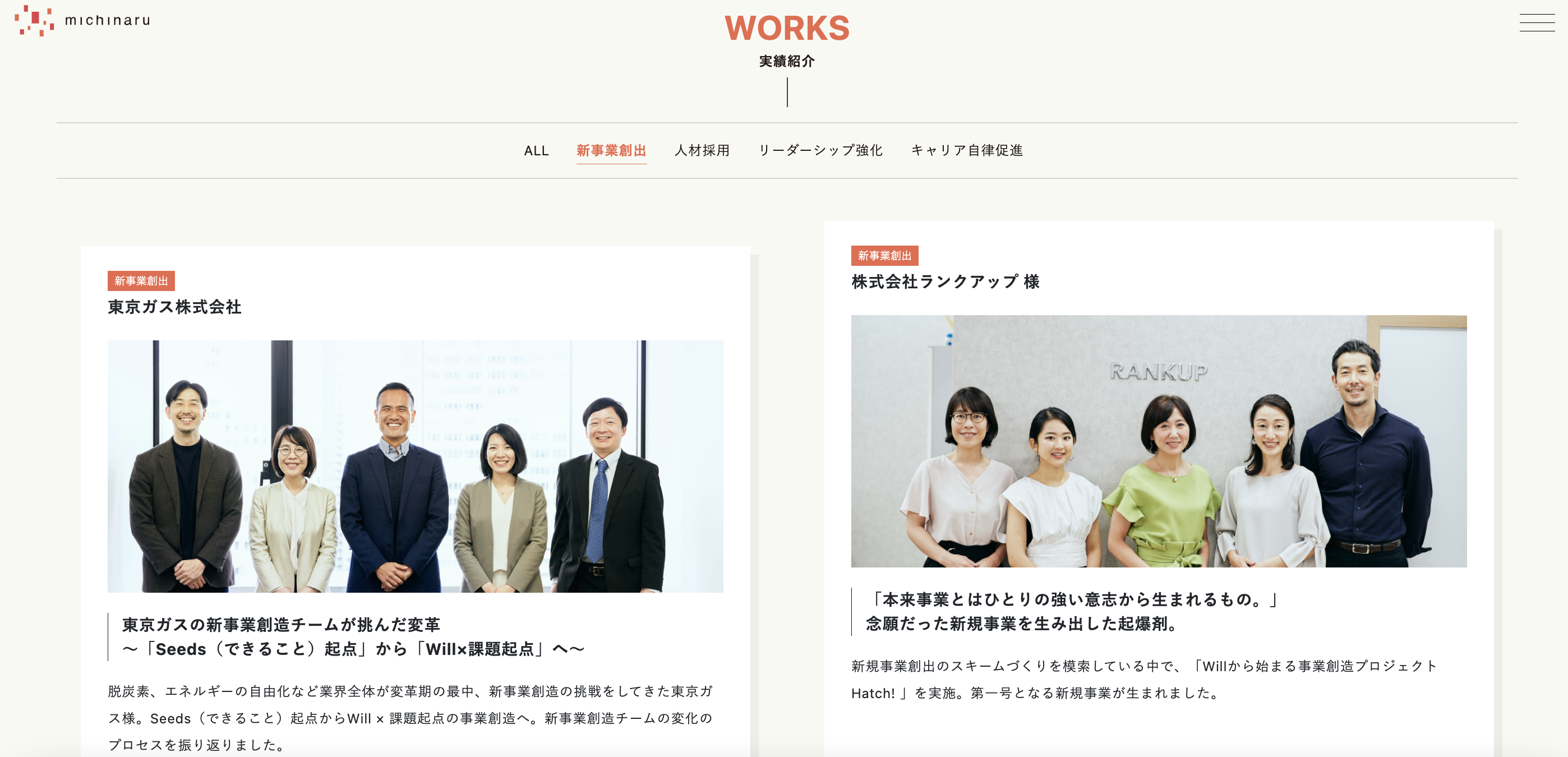新規事業創造・人材採用・リーダーシップ強化など様々な企業事例を掲載しています