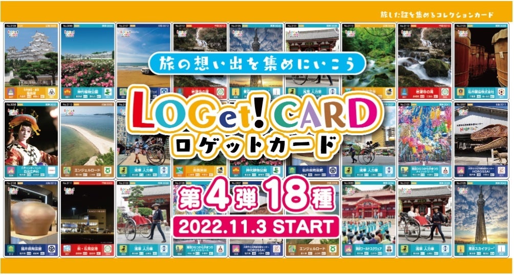 本年11月3日に追加発行された待望の第4弾18スポットでは、世界遺産・国宝「姫路城」、「江戸ワンダーランド日光江戸村」、「東武ワールドスクウェア」などの人気スポットに加えて、浅草初!そして全国初!の「人力車」も登場。 ロゲットカード公式ホームページ( https://loget-card.jp/list_card.aspx )