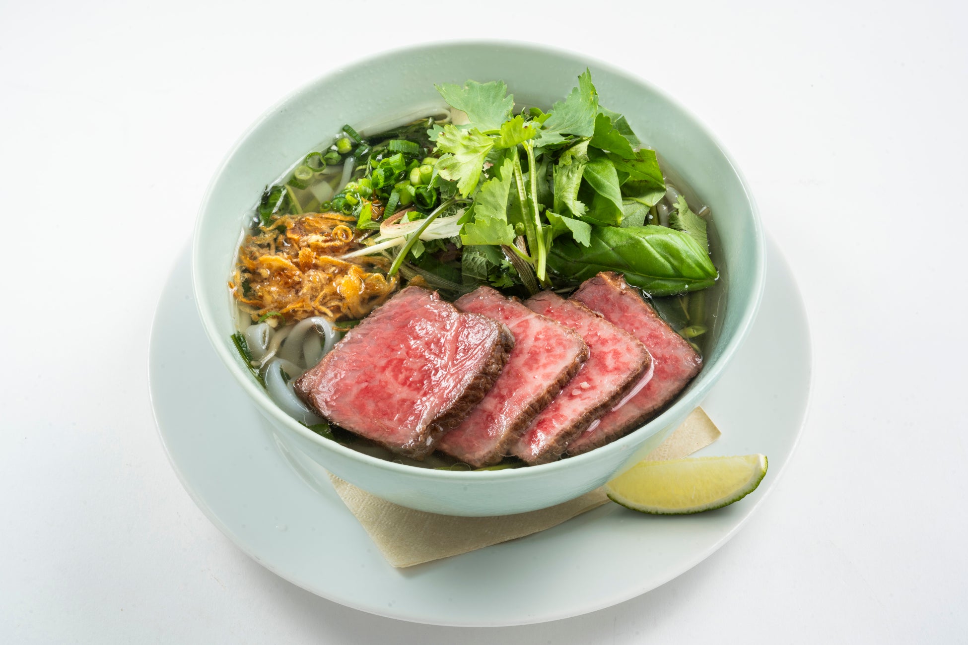 低温でやわらかく調理したモモ肉を大胆にカット。人気メニューのフォーにのせてボリューム満点に。パクチー・バジル・シソ・ミョウガなどの薬味と絡めてお召し上がりください。