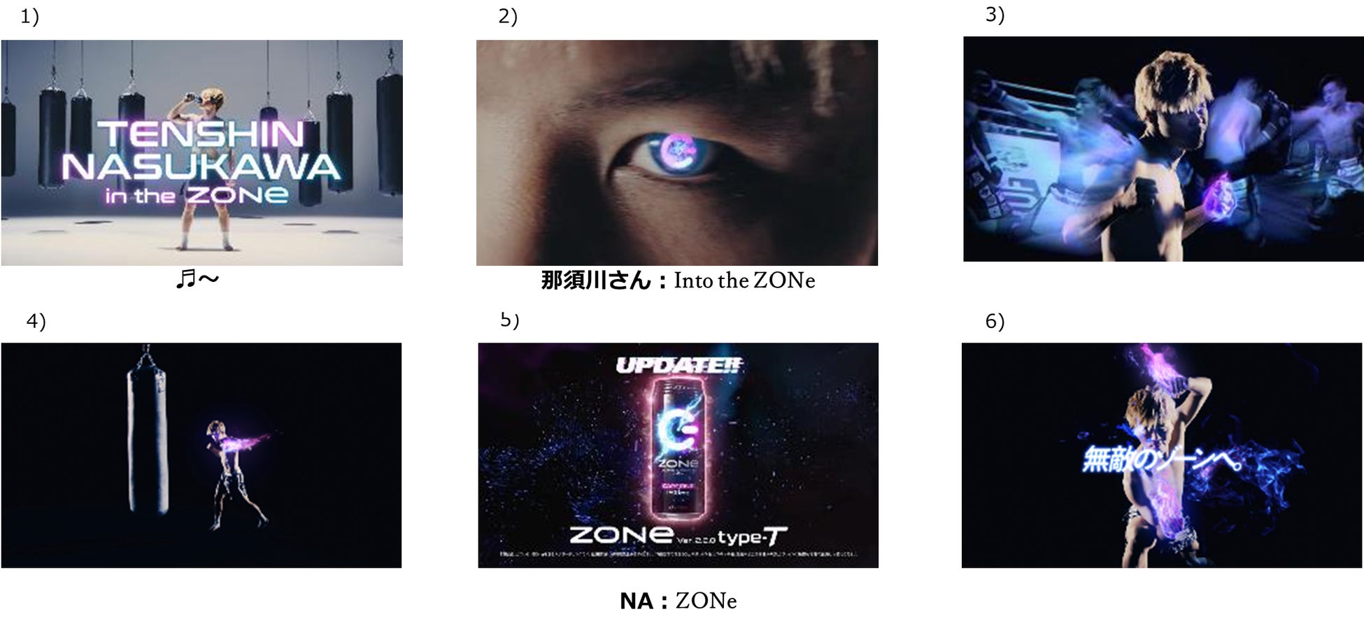 今回のWEBCMでは、無敗記録を保持するキックボクシングを引退し、2022年6月にボクシングの世界へ飛び込む那須川天心さんの“無敵のゾーン”を、キックではなくあえてパンチで表現しています。サンドバッグに囲まれた那須川天心さんが「ZONe」を飲むカットからスタートし、無敵のゾーンに入った那須川天心さんの目には「ZONe EYE」が灯ります。背後には過去の試合映像が走馬灯のように流れ、キックボクシング界で活躍し続けた若き天才の軌跡を映し出します。新たな世界への挑戦を表すパンチがサンドバックを吹き飛ばし、ラストカットでは、「無敵のゾーンへ。」というメッセージと共に、彼の決めポーズである「トリケラトプス拳」が披露されます。