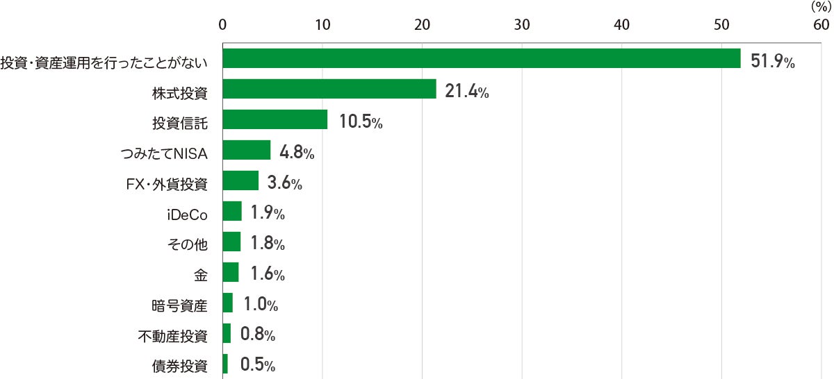 行ったことのある投資・資産運用をすべて教えてください。(複数回答可)
