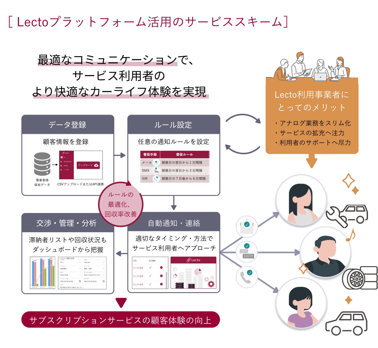 今回のブリヂストンソリューションジャパンとの提携を契機に、Lectoは、今後とも自動車産業を含む様々な分野のサブスクリプションサービスの課題解決やDXの推進、顧客体験の向上のために貢献してまいります。
