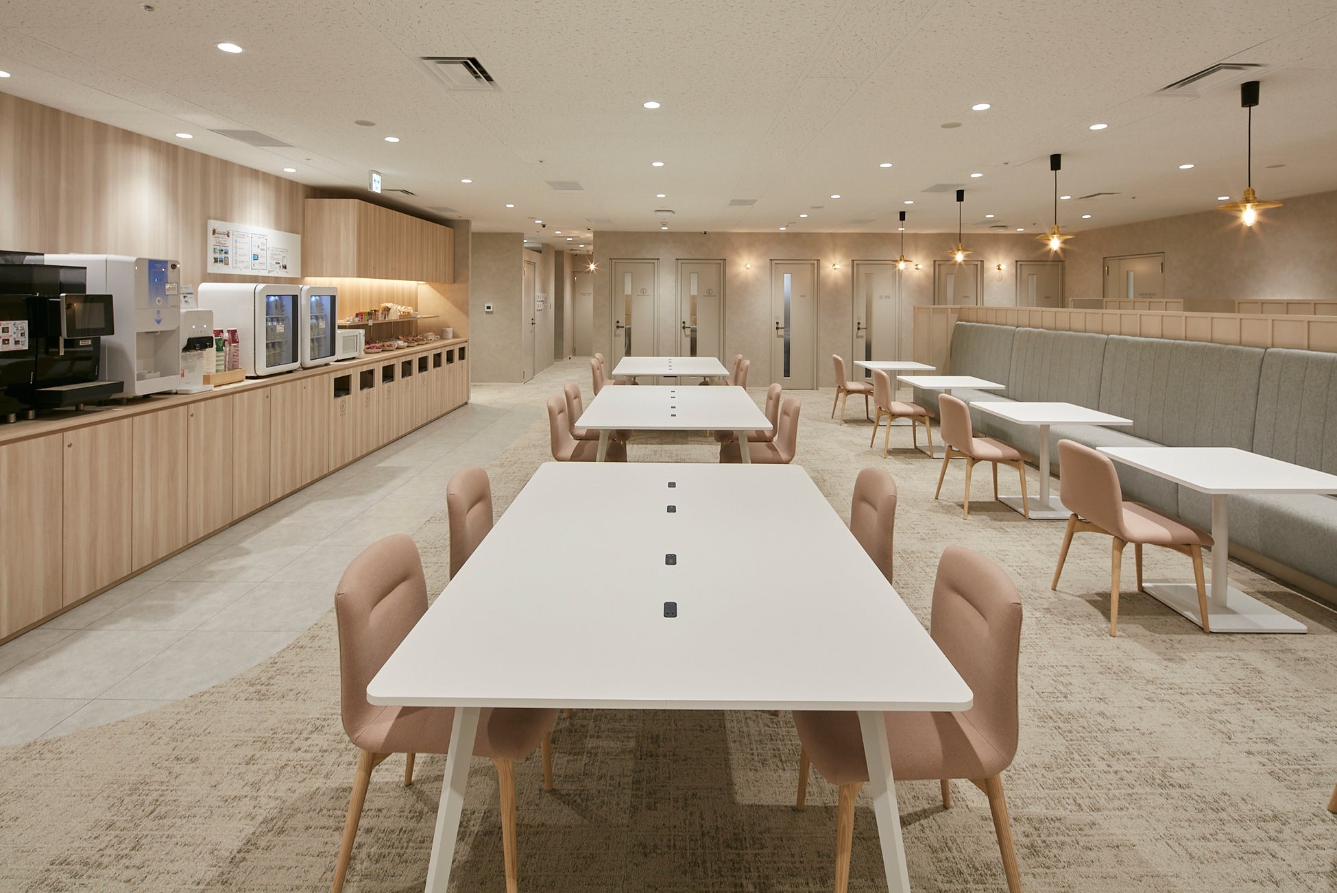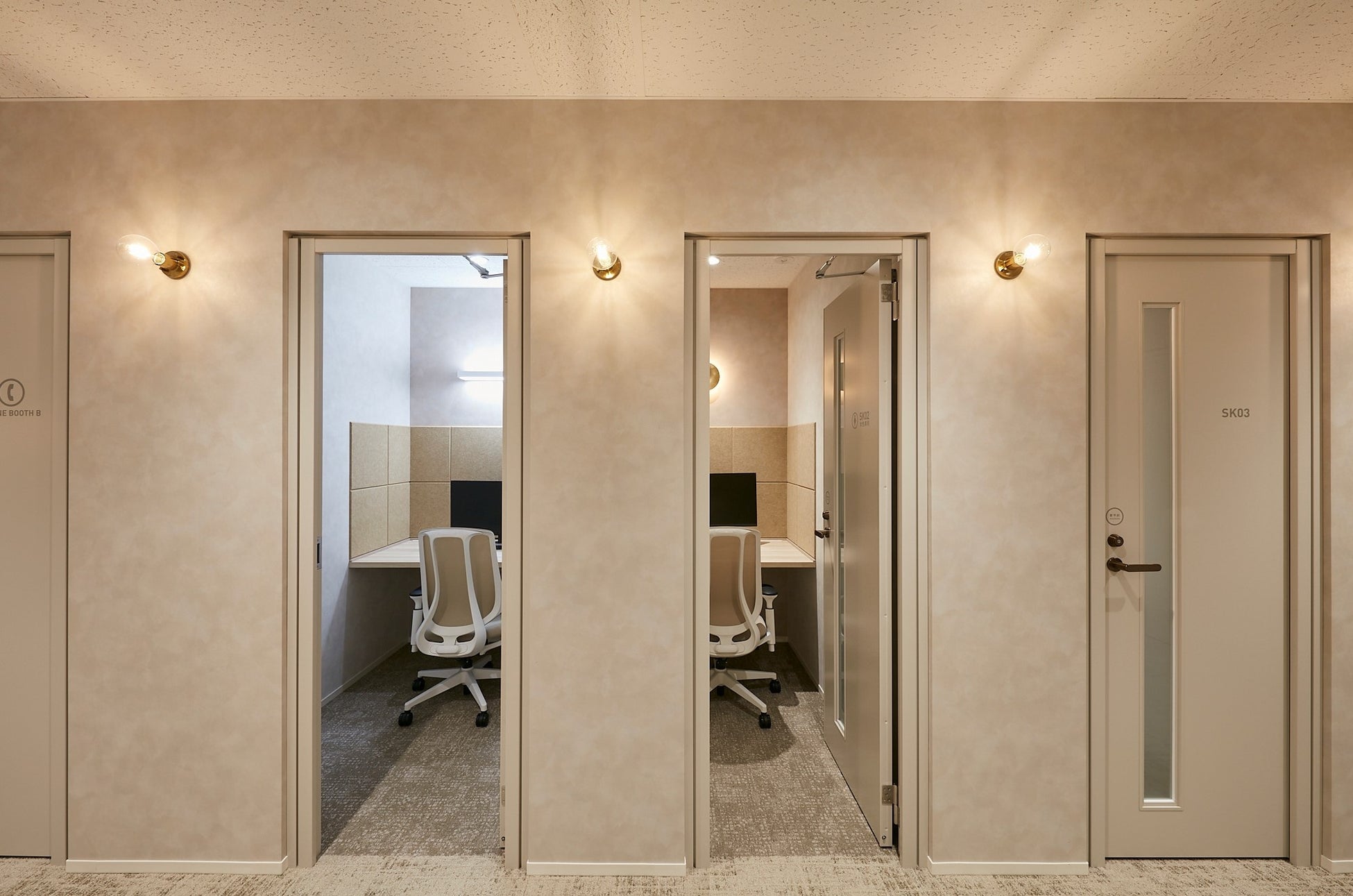 一人一人が仕事に集中できるよう、防音性の高い完全個室を数多く設けています。デスクサイズは広めに設計し、終日のご利用でも快適にお過ごしいただけます。