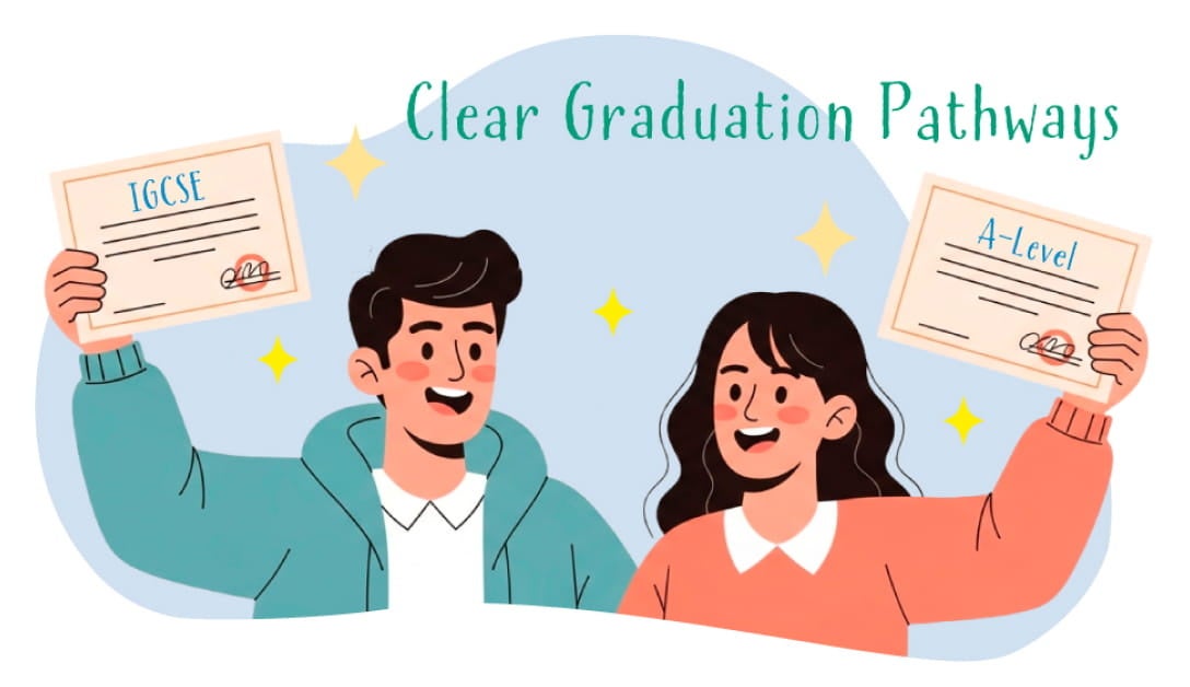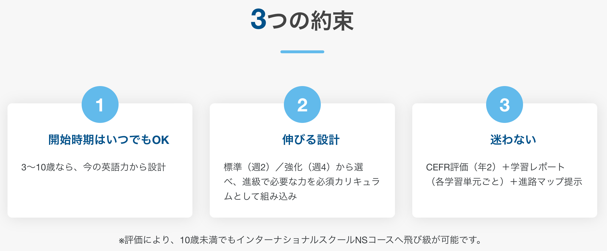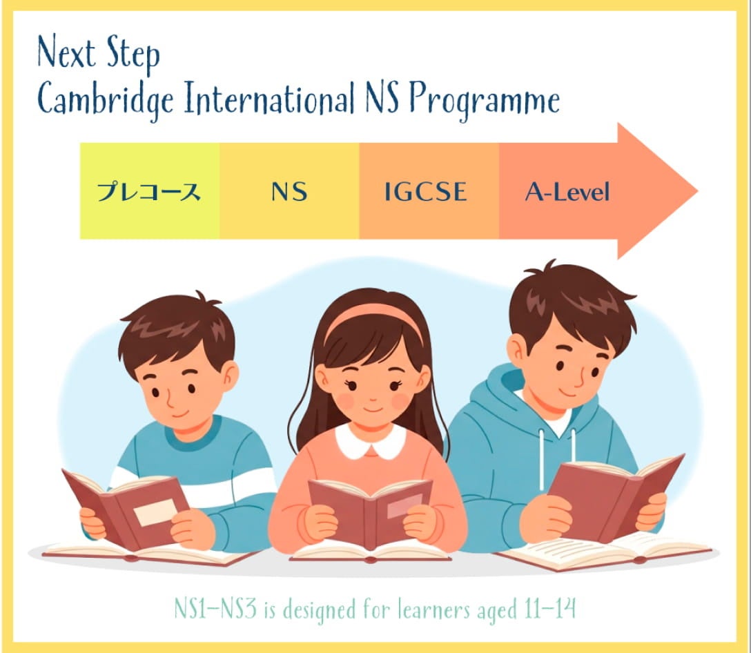 3歳から10歳であれば、現在の英語力に関わらずいつでもスタート可能。フォニックスや語彙の基礎から始まり、最終的に国際資格IGCSE(イギリスの中学校卒業資格相当)やA-Level(世界中の大学進学に利用可能な高校卒業資格)を目指せる設計になっています。