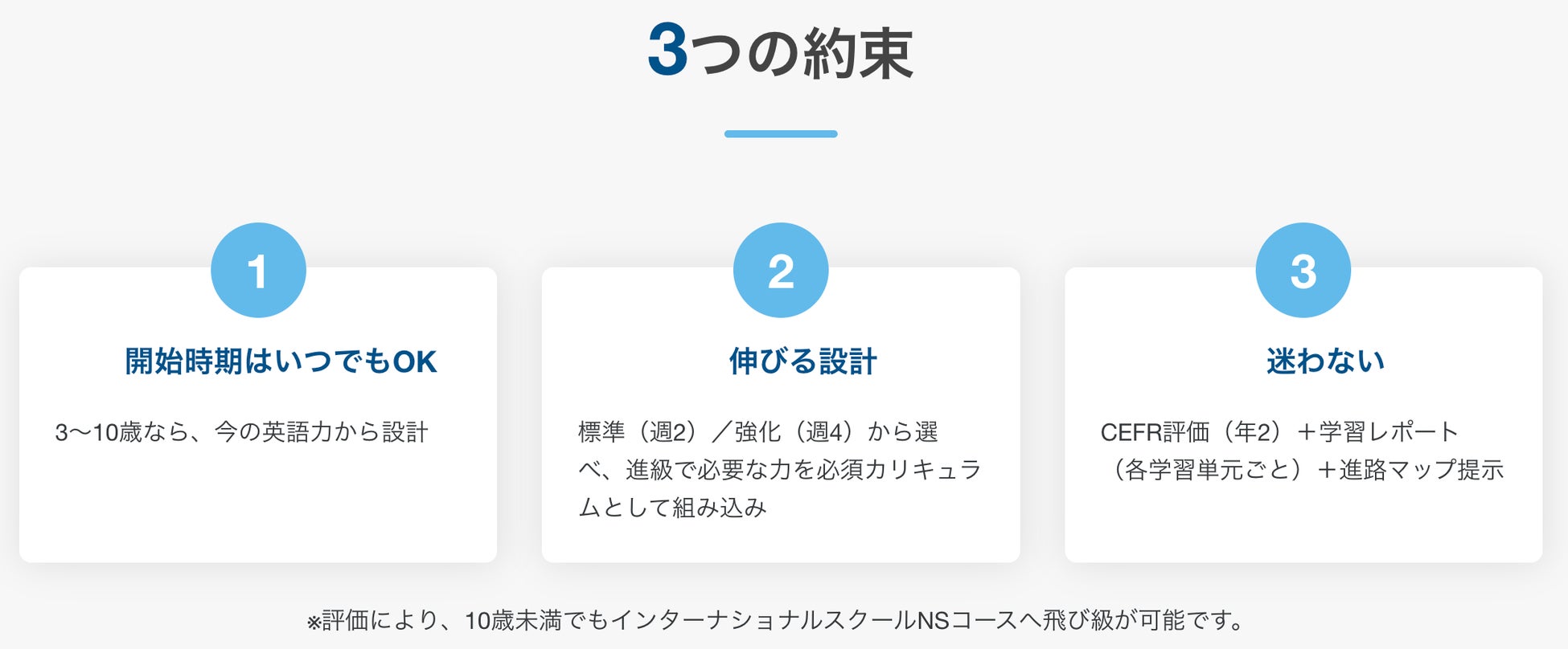評価制度: 年2回のCEFR英語力評価、学習単元ごとの学習レポート、将来の進路マップ提示