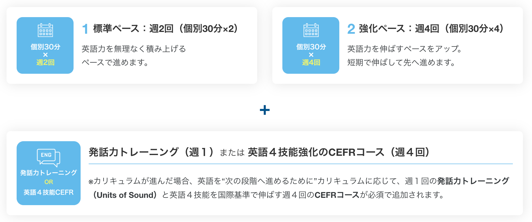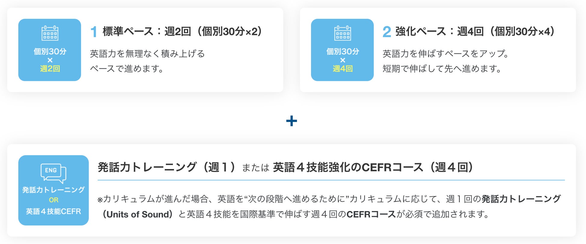学習内容: 個別レッスン、発話力トレーニング、CEFRベースの4技能強化