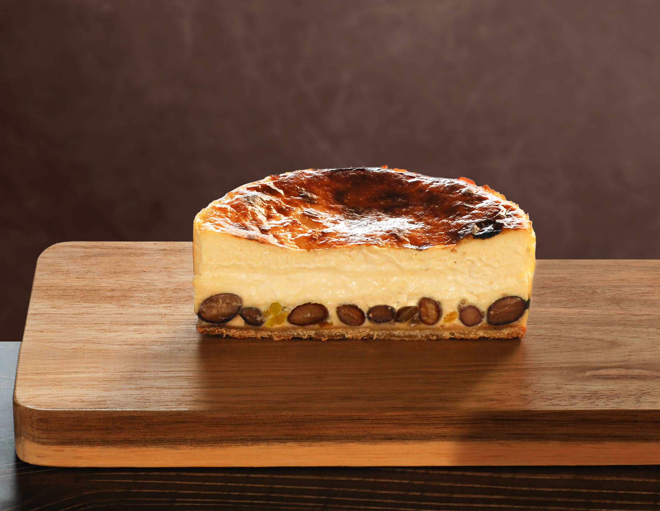 爽やかな香りがフワリと鼻に抜けていく本柚子ピールと黒豆煮の生み出すケミストリーのアクセントが新感覚なチーズケーキです。