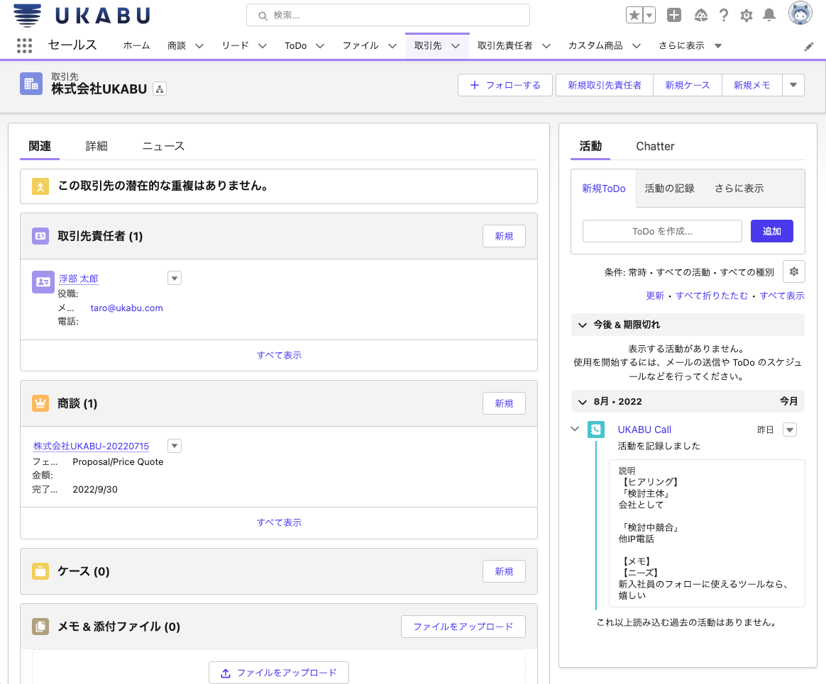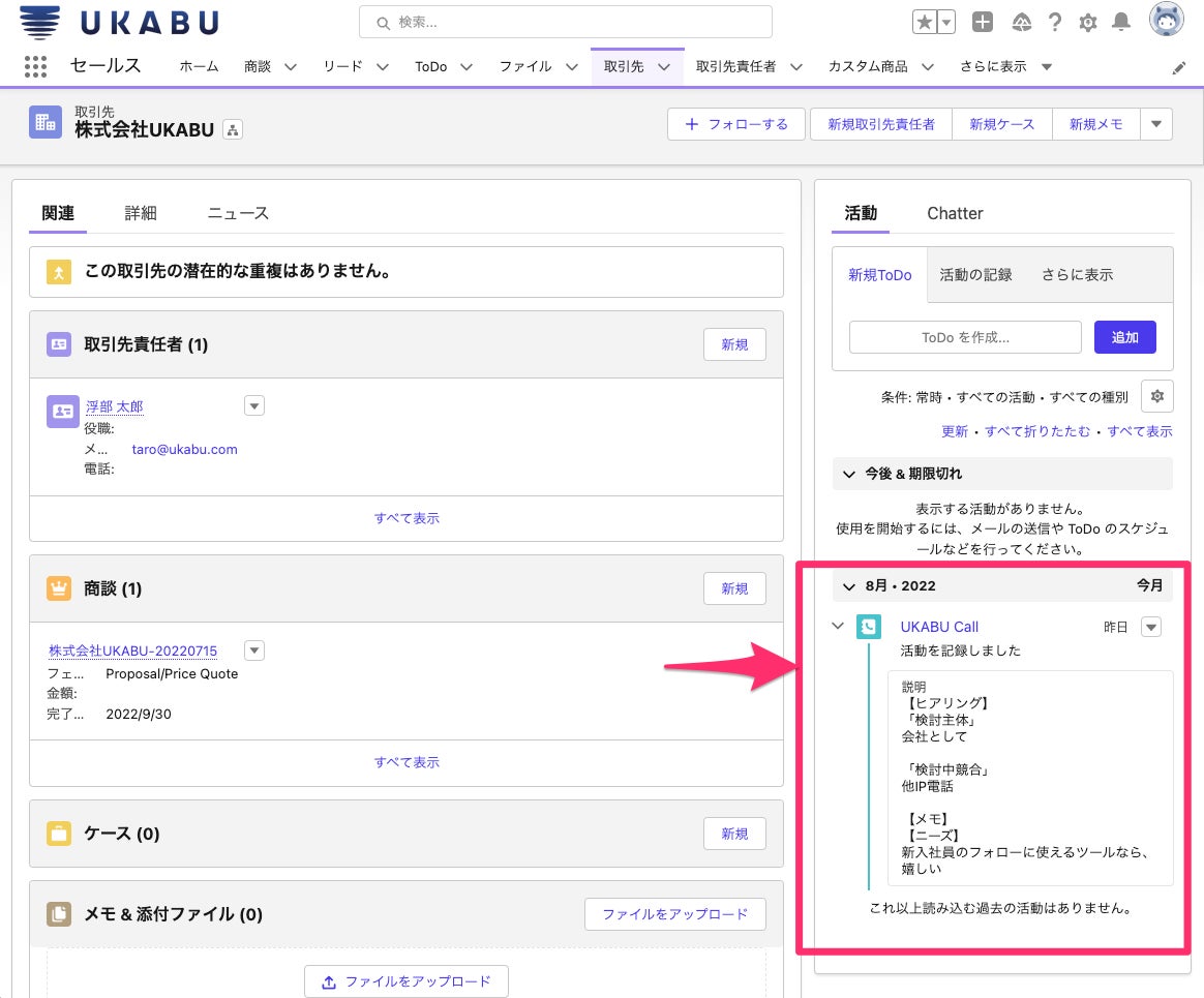 ~ UKABUで利用したヒアリング項目や商談メモをSalesforceへ自動登録 ~