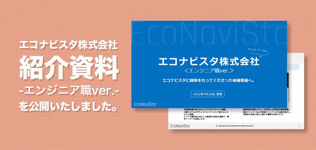 エコナビスタの企業・事業情報だけでなく、開発エンジニアとして働くイメージが湧きやすいよう、各種データも交えて紹介しています。