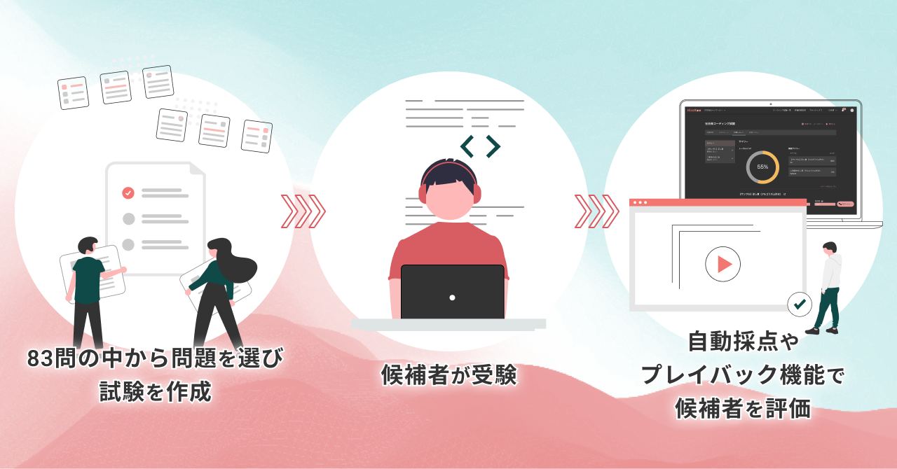 選択できる問題数は現在83問で、アルゴリズムを問うものから選択式の知識問題、システムデザイン形式まで幅広く用意されています。その豊富な問題数と直感的なUIで試験作成のコストを大幅に削減し、求めるエンジニア層や測りたいスキルに合わせて最適な試験を作成できます。